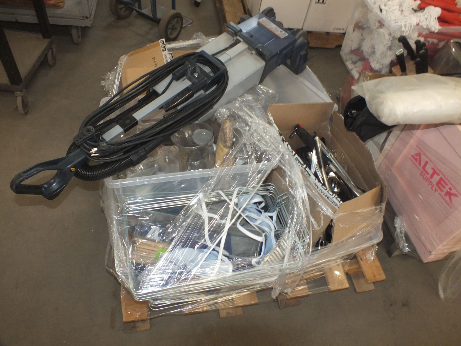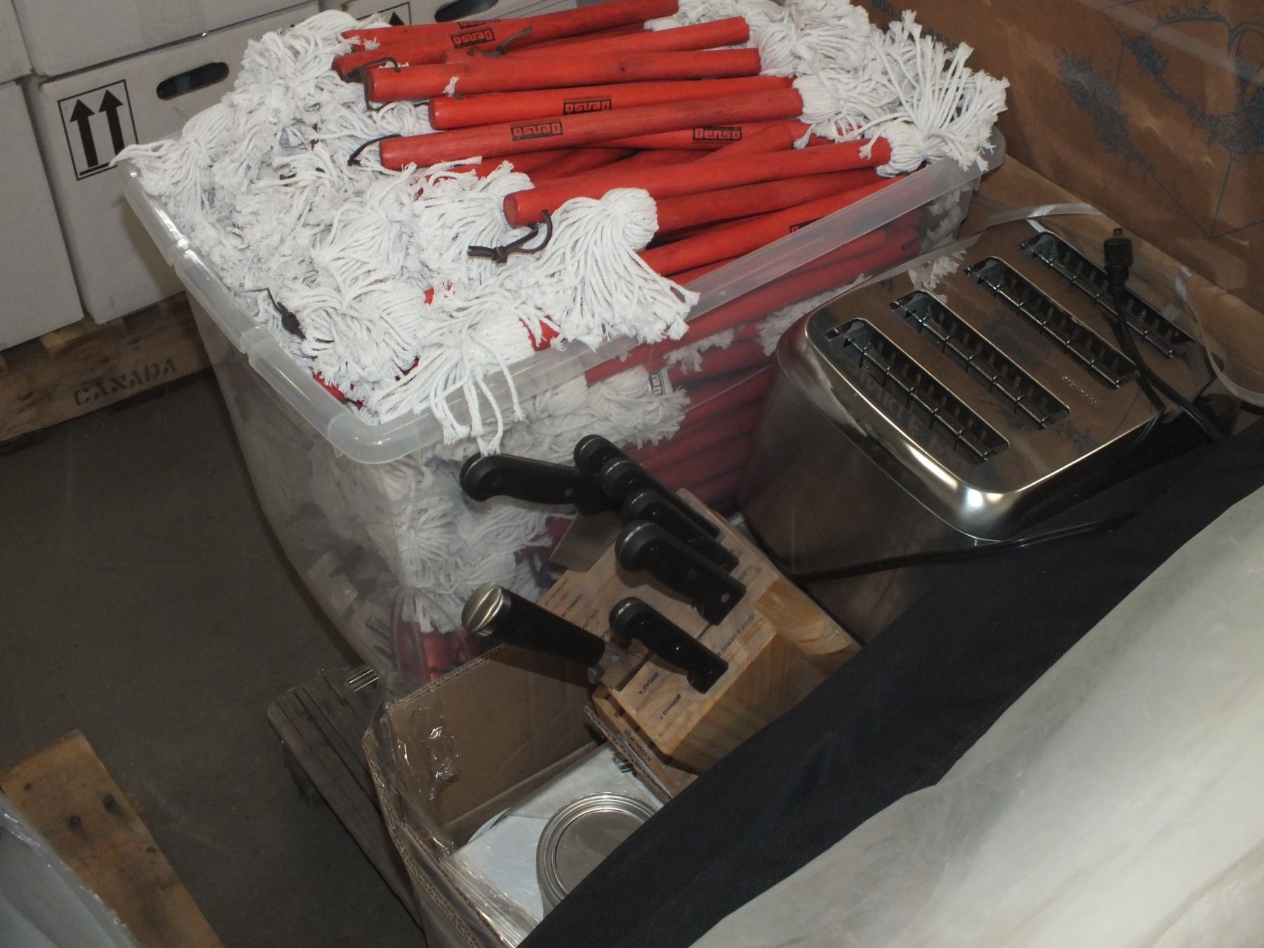 you get it all for one money, assorted dishes, cooking knives and new utensils, Christmas deco, wash brushes, toaster, vacuum, ...new/used