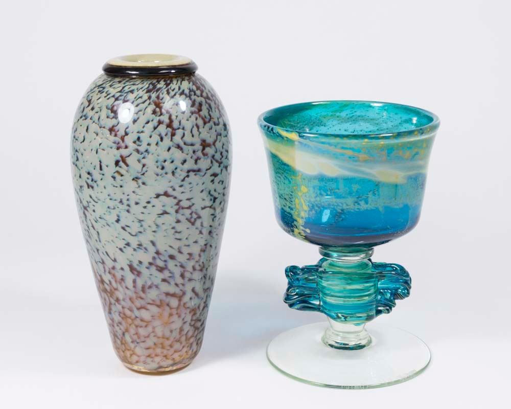 Vase, signed FITZ 03, approx. 9 1/4" H; and large footed chalice, Mdina glass from Malta, signed and dated 1978. approx. 7 1/4" H x 5" W. (6084)