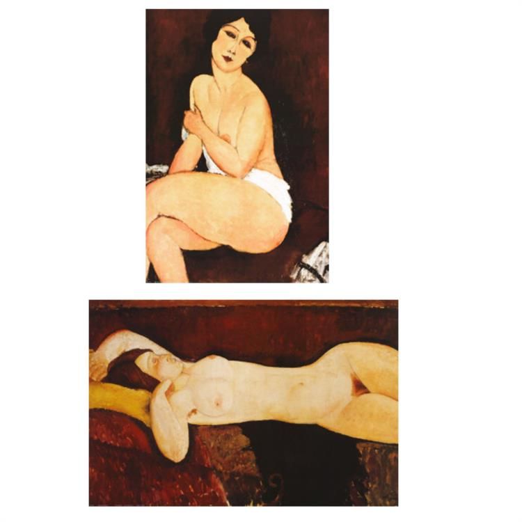 2 Modigliani Nude Prints Sitting on a Sofa, Reclining