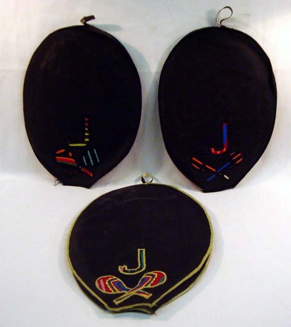 2 Mola Racket Ball Covers. Mola art on both sides, zipper closure. Measures approx. 13''H x 9.75''W.
