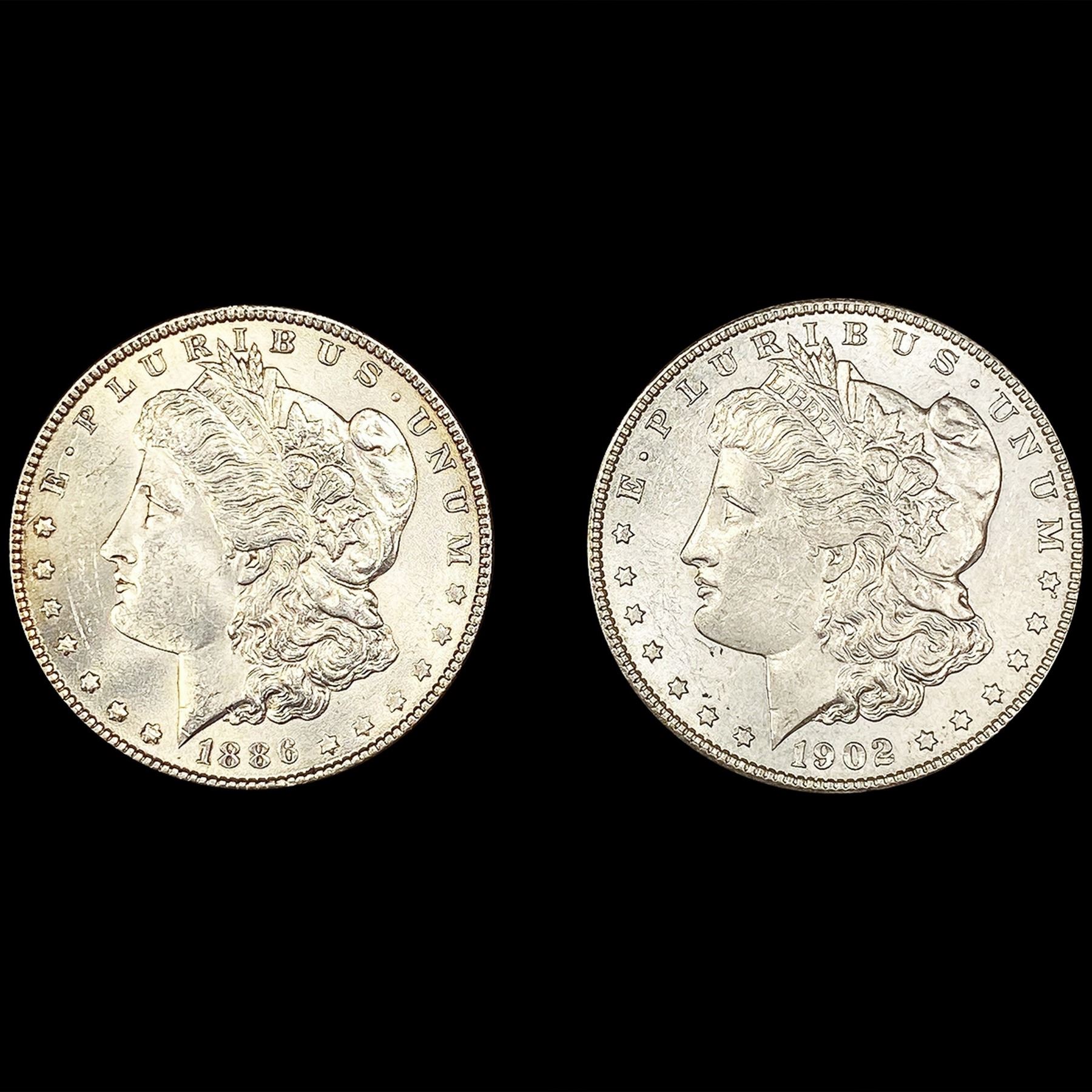 [2] Morgan Silver Dollars (1886, 1902-O) UNCIRCULA