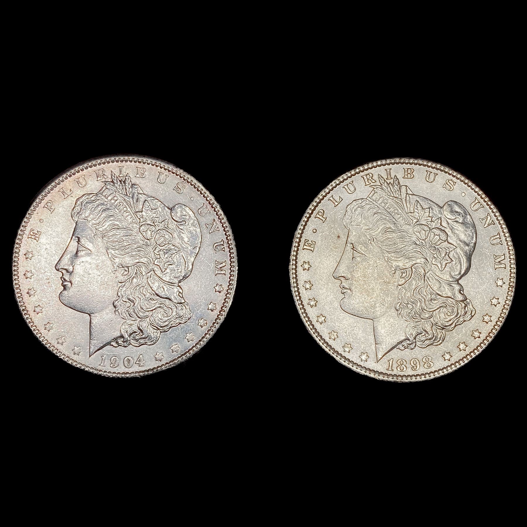 (2) Morgan Silver Dollars (1898, 1904-O) UNCIRCULA