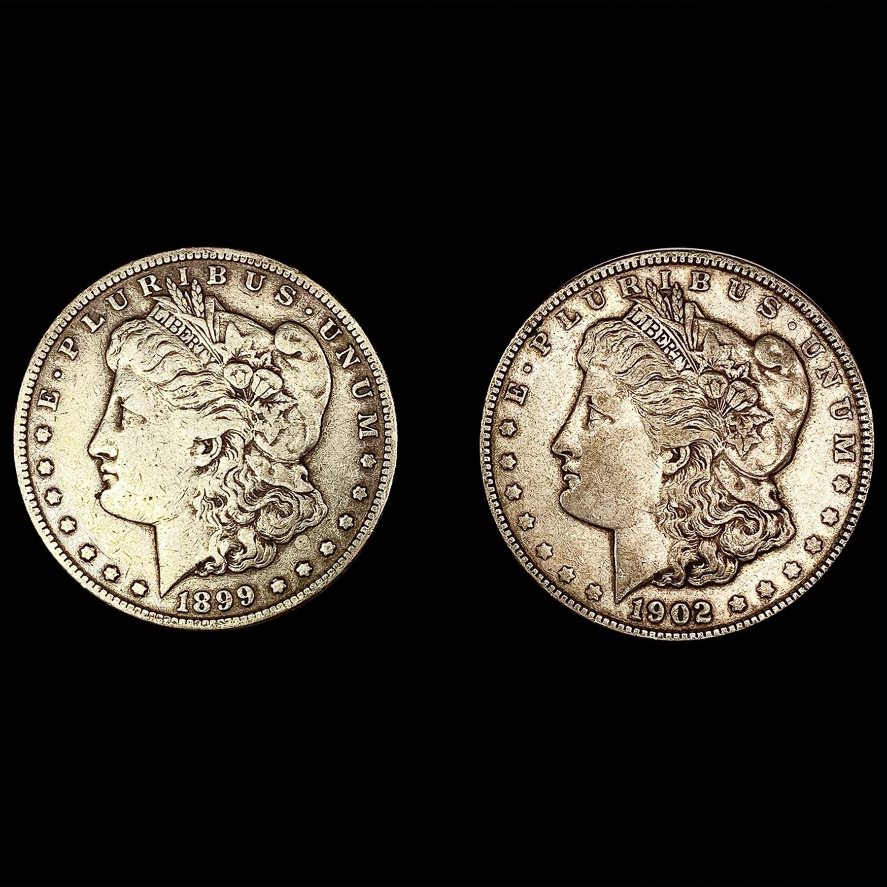 (2) Morgan Silver Dollars (1899-S, 1902) NICELY C