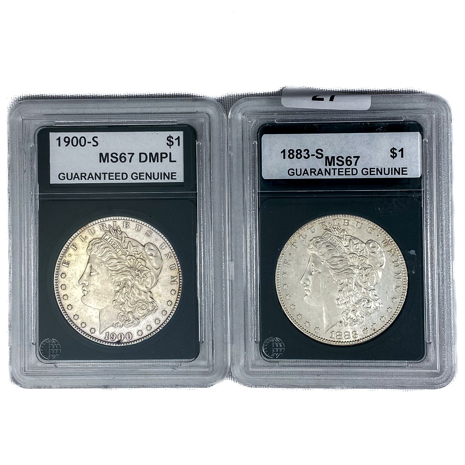(2) Morgan Silver Dollars MS67 (1883-S, 1900-2)