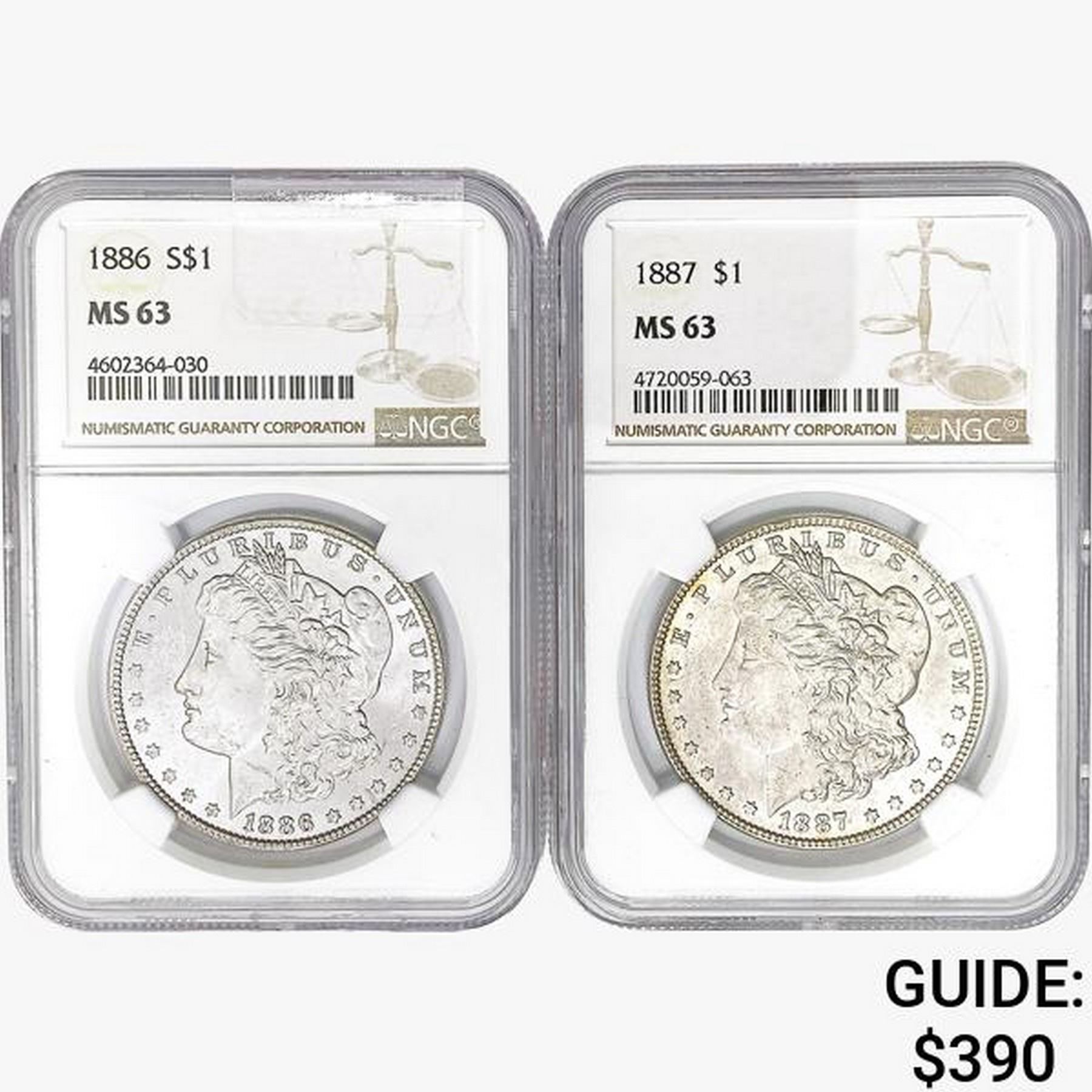 [2] Morgan Silver Dollars NGC MS63 [1886, 1887]