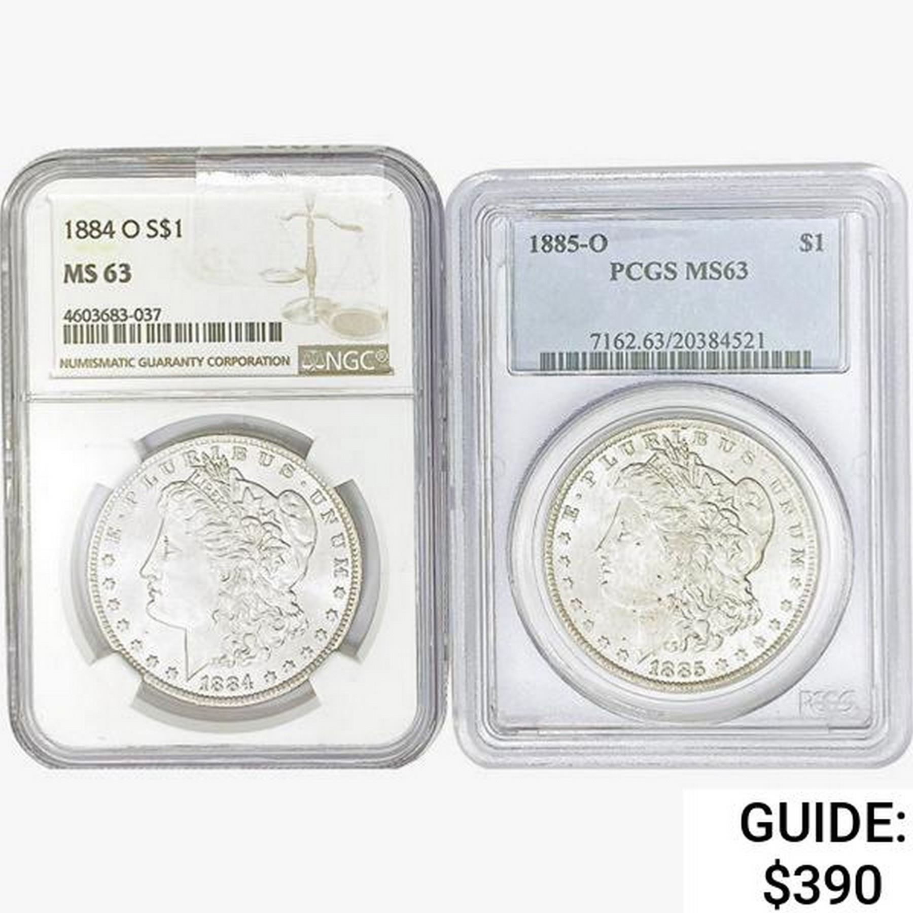 [2] Morgan Silver Dollars NGC/PCGS MS63 [1884-O, 1