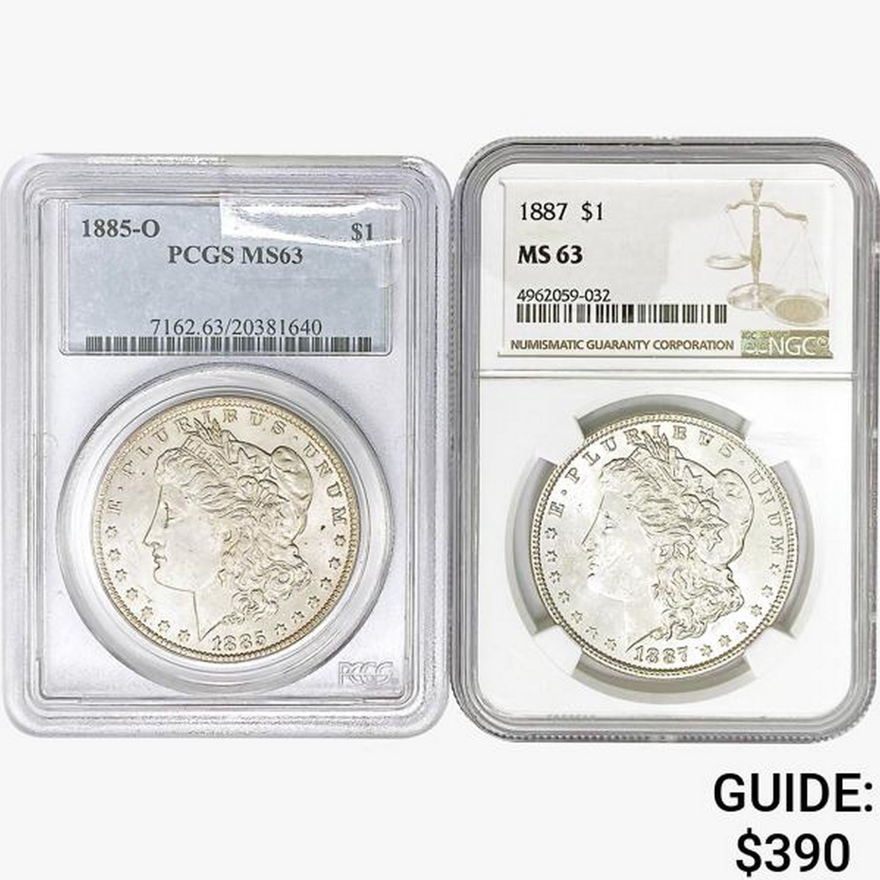 [2] Morgan Silver Dollars NGC/PCGS MS63 [1885-O, 1