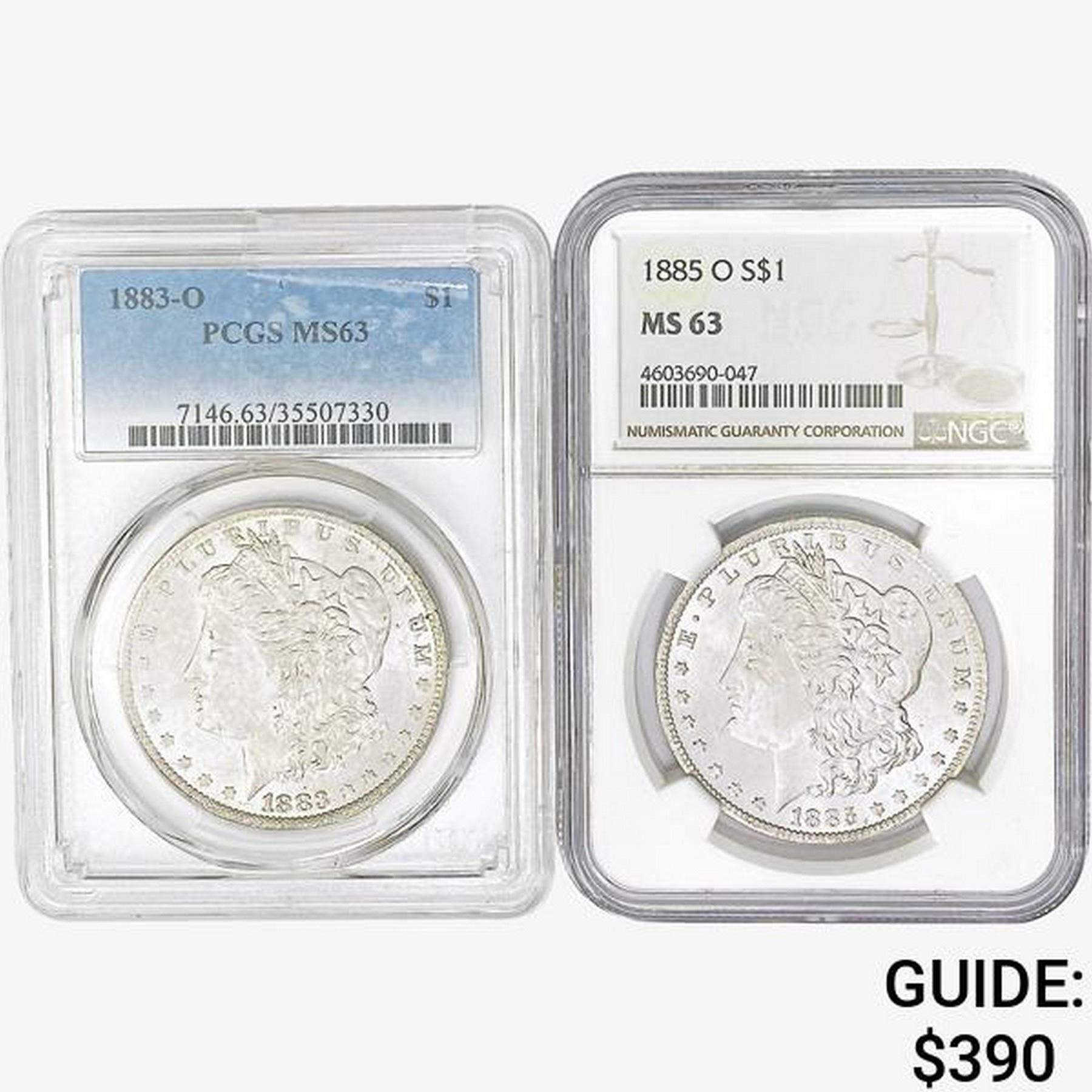 [2] Morgan Silver Dollars PCGS/NGC MS63 [1883-O, 1