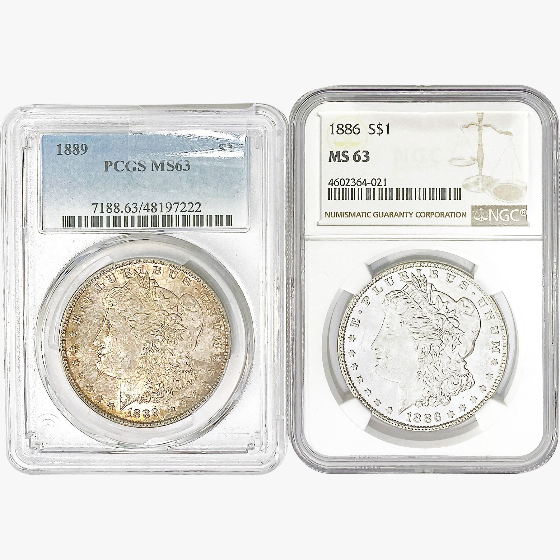 [2] Morgan Silver Dollars PCGS/NGC MS63 [1886, 188