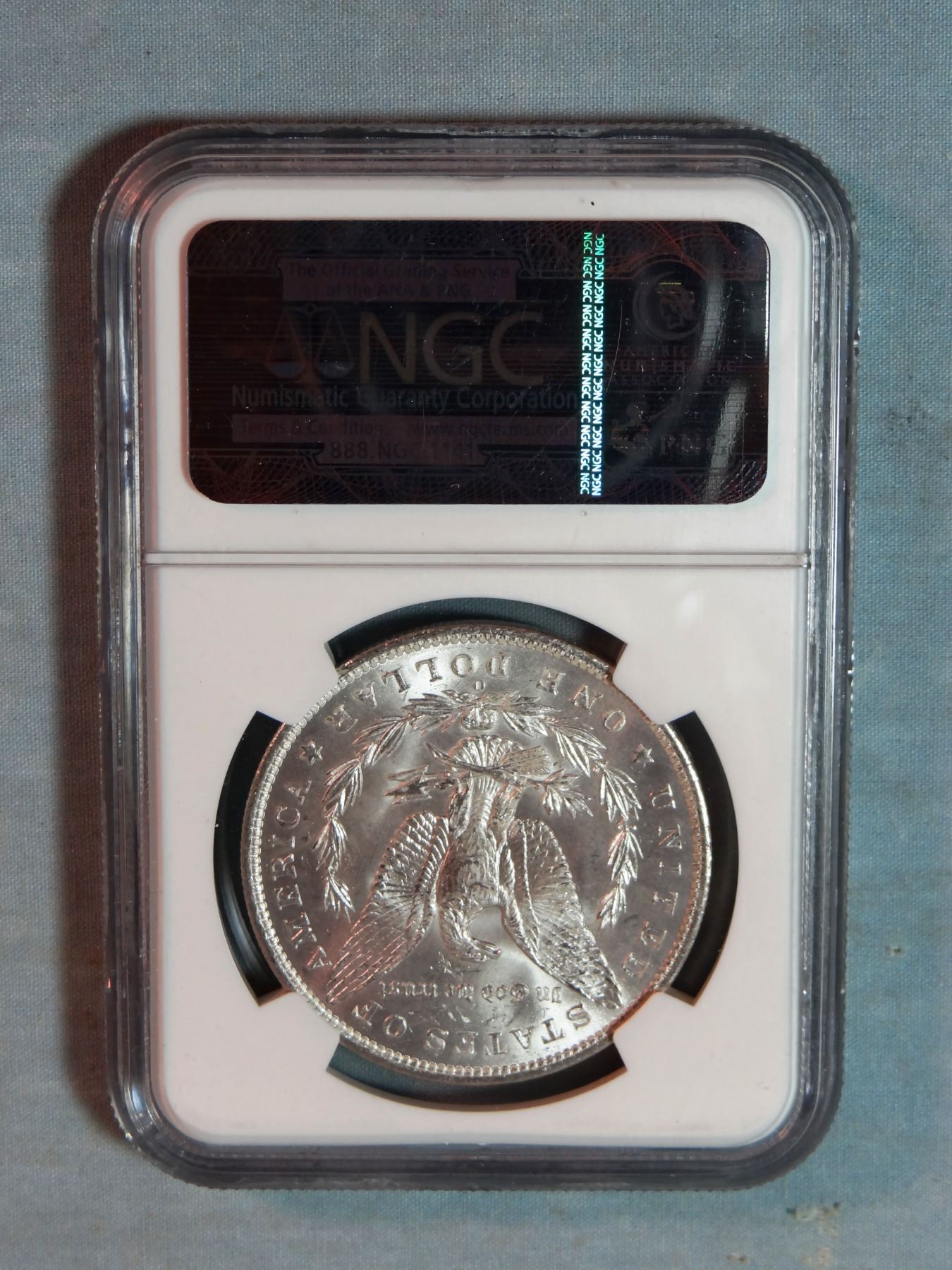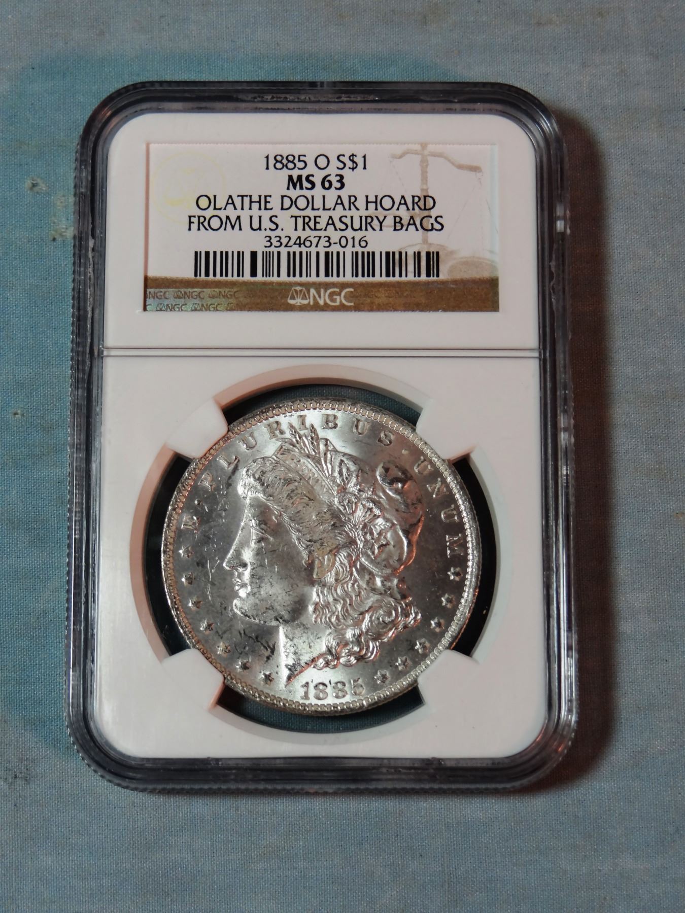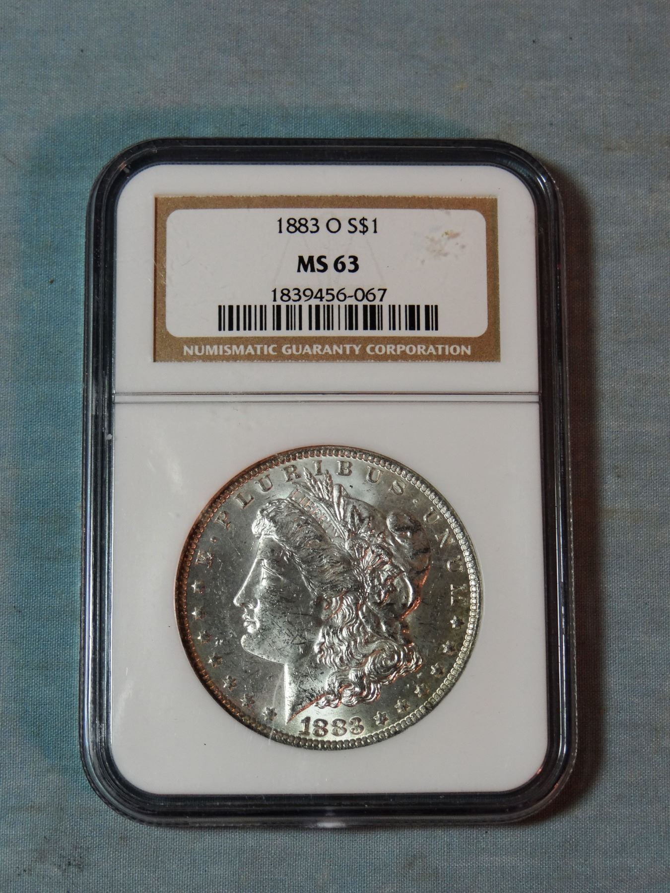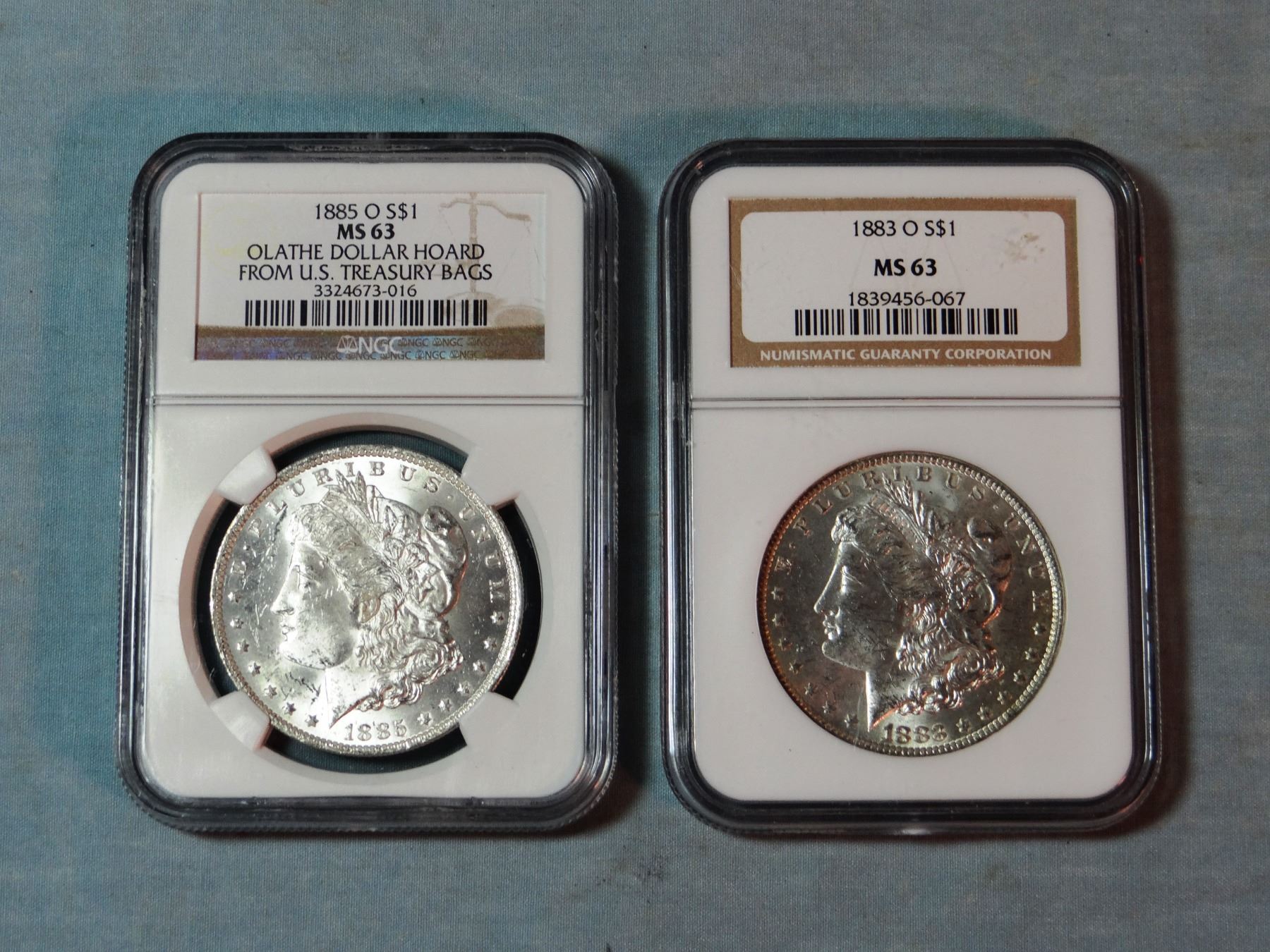 2 Morgan dollars, 1885-O and 1883-O, both NGC 63