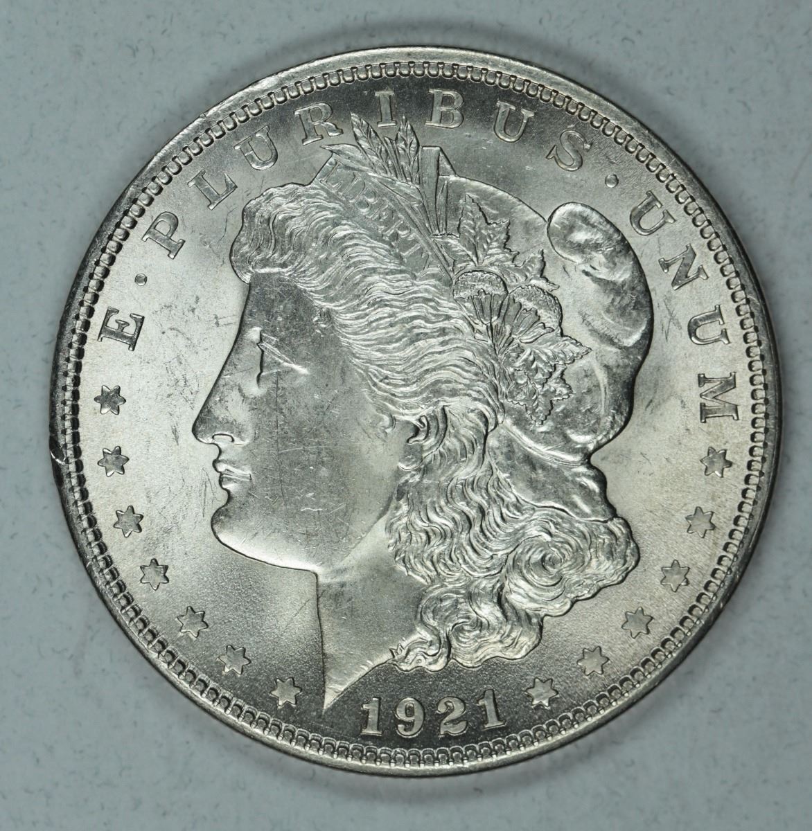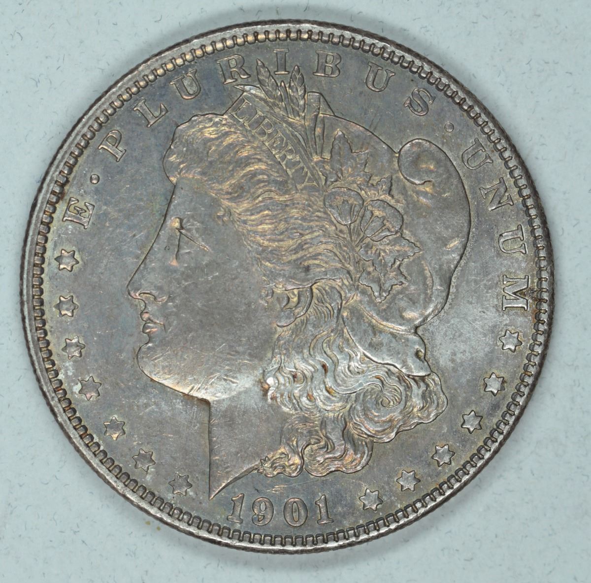 2 Morgan dollars, 1901 Obverse toned and 1921 P