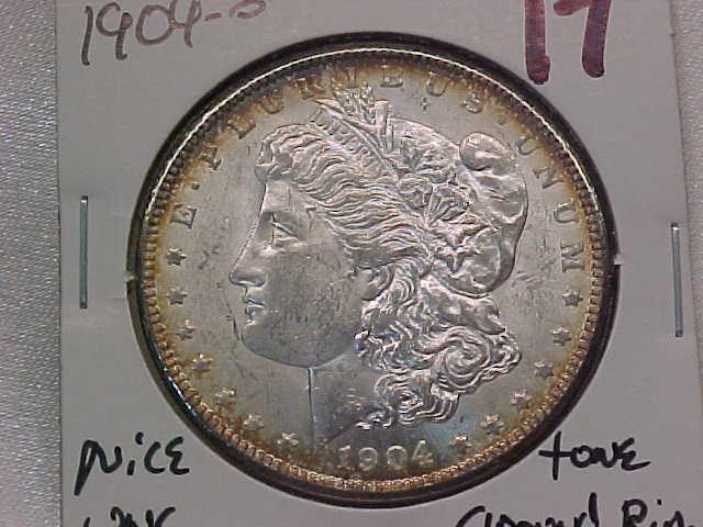 2 Morgan $: 1901S EF, 1904-O Nice Unc rim toning