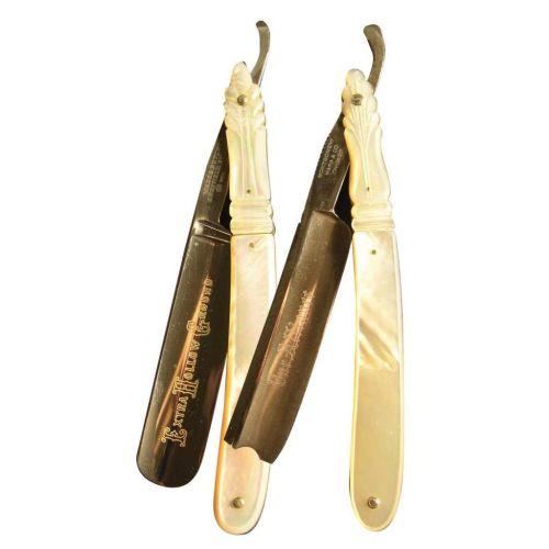 Two Mother of pearl handled straight razors, blade engraved Extra Hollow Ground. Excellent condition.