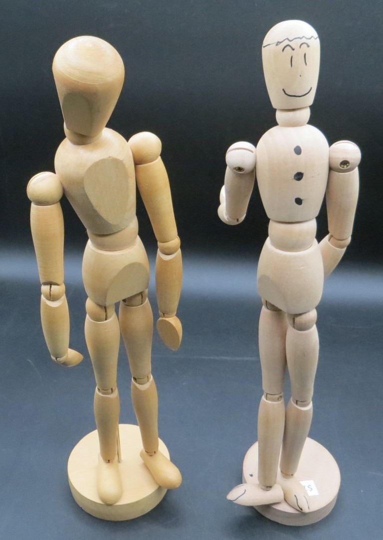 2 Movable Wooden Figures Flexible Joints 13" Tall