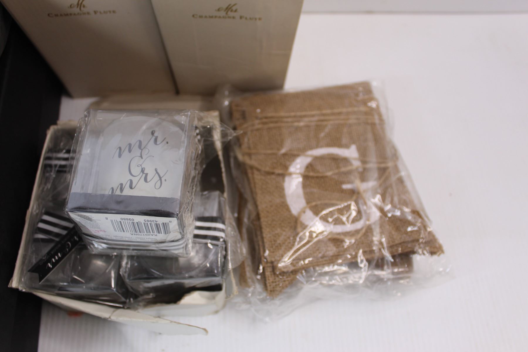 (2) Mr. And Mrs. Champagne Flutes- Both NIB, Bride Tribe Cup Jacuzzies, Misc.