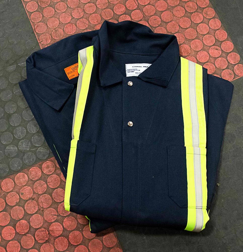 2 NAVY BLUE ONE PIECE COVERALLS W/ REFLECTORS S:62