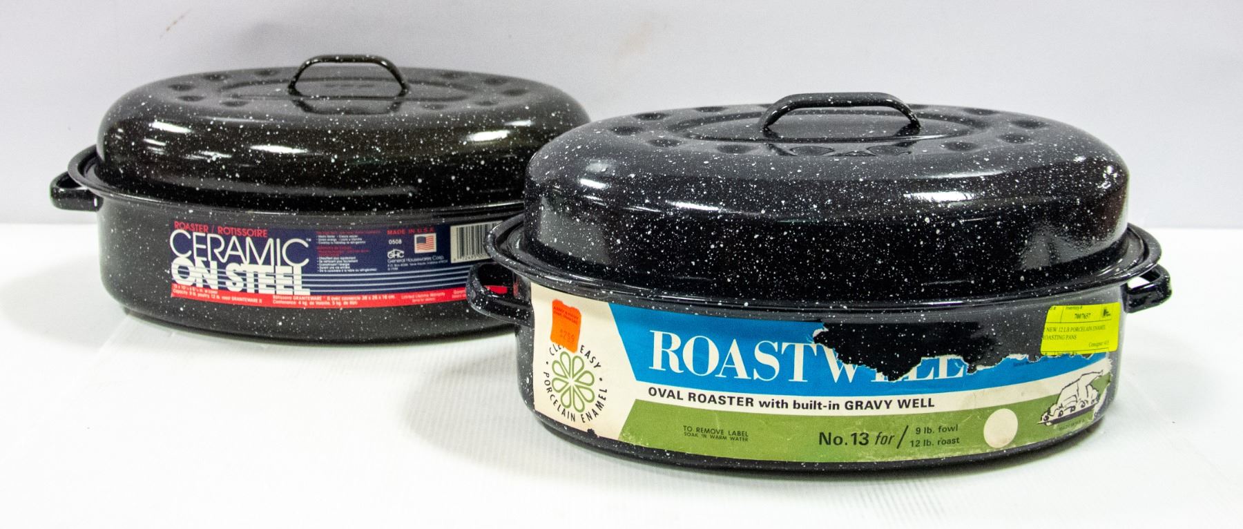 2 NEW 12 LB PORCELAIN ENAMEL ROASTING PANS