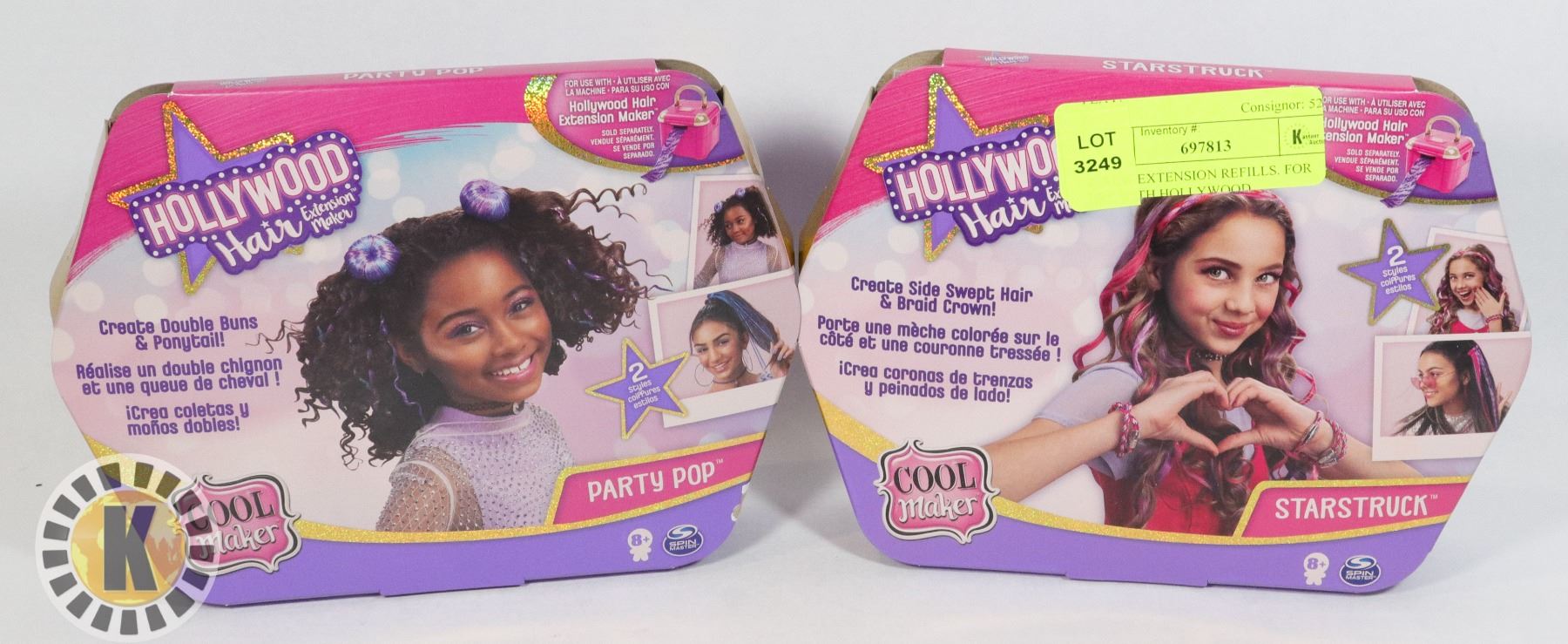 EXTENSION MAKER. 2 KITS. 1 KIT INCLUDES 2 BUN MAKERS, 6 EXTENSIONS, 2 CLIPS, 1 BOBBY PIN, 1 MARKER, 1 PONYTAIL ELASTIC. INSTRUCTION SHEET. 1 KIT CONTAINS HEADBAND, 6 EXTENSIONS, 2 ELASTICS, 1 MARKER, 1 STICKER SHEET, 1 CLIP, AND INSTRUCTION SHEET