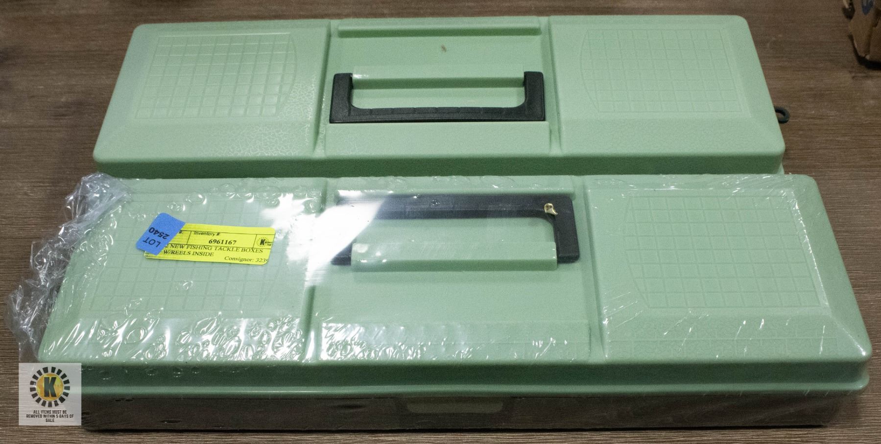 2 NEW FISHING TACKLE BOXES W/REELS INSIDE