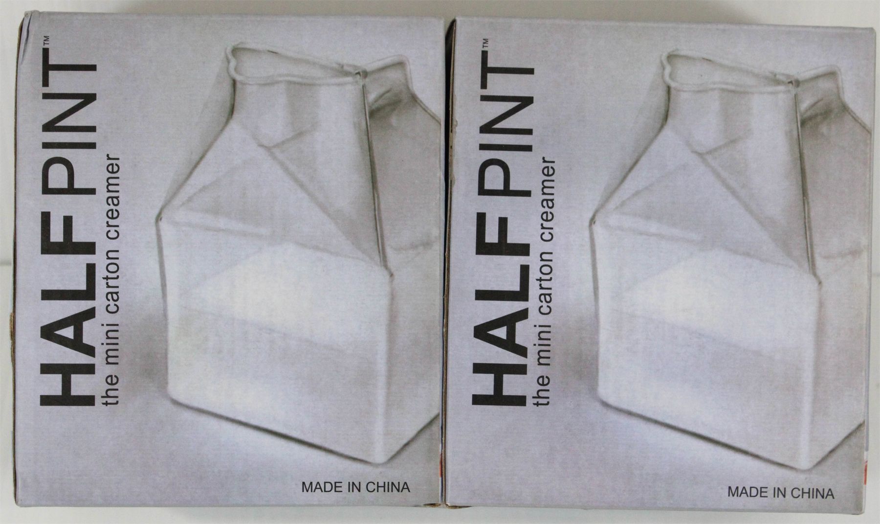 2 NEW HALF PINT MINI GLASS CARTON CREAMER CONTAINERS