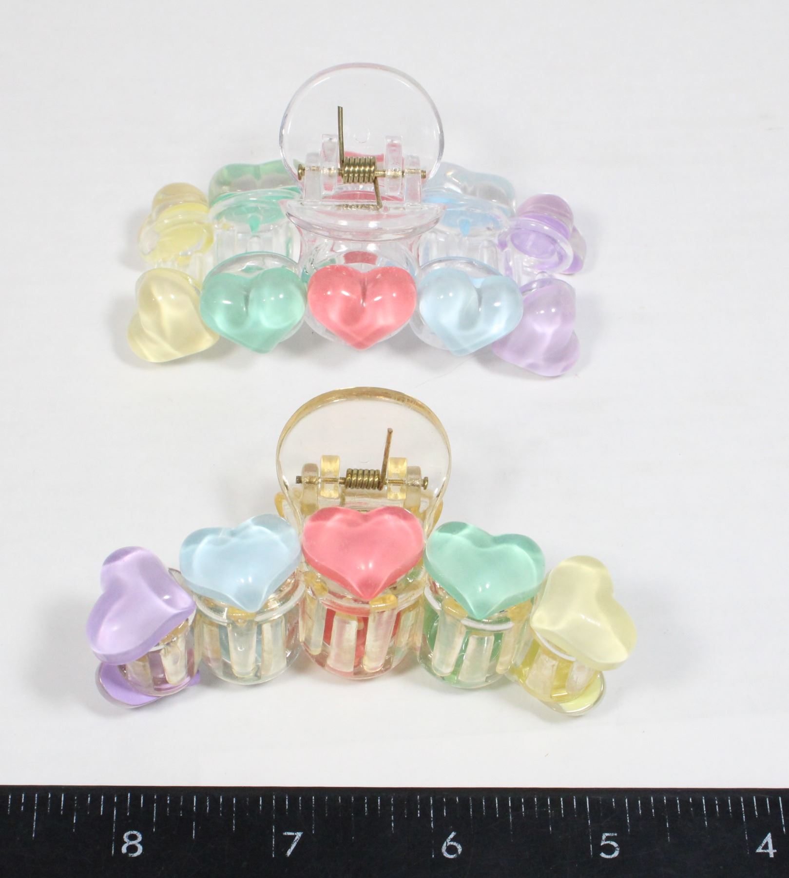 2 NEW HEART DESIGN CLAW CLIP HAIR CLIPS ONE CLEAR