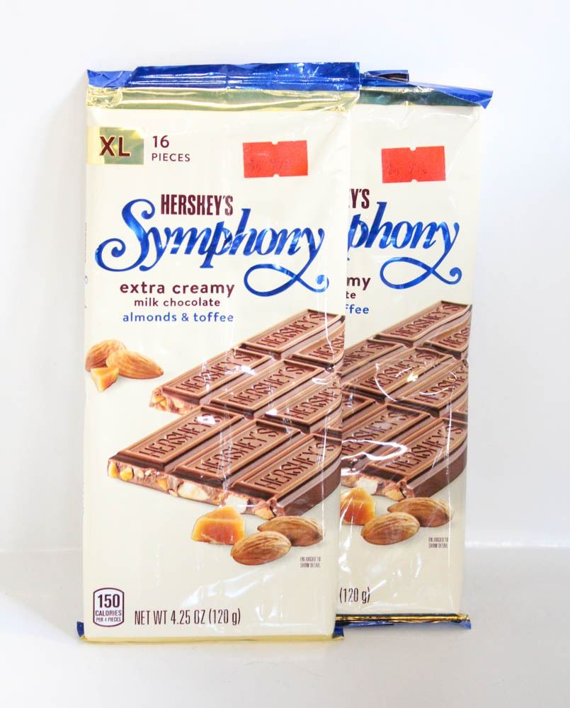 CHOCOLATE WITH ALMONDS AND TOFFEE, 120G BARS, BB MAY 2025.