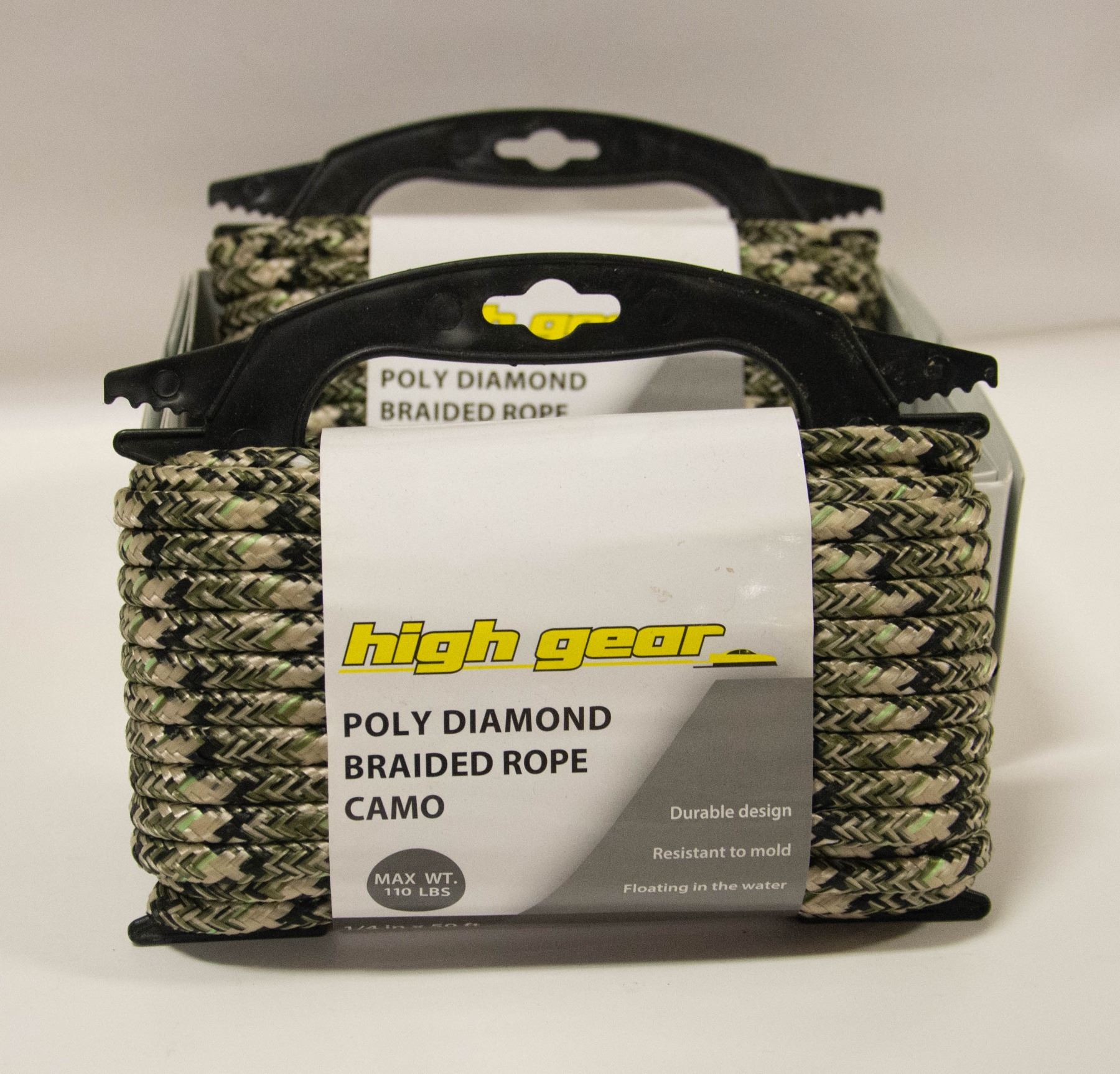 ROPE CAMO MAX WEIGHT 110LBS 1/4 INCH X 50FT DURABLE DESIGN, RESISTANT TO MOLD, FLOATS IN WATER **ALL ITEMS MUST BE REMOVED BY 5PM SATURDAY, JULY 20TH 2024. ALL REMAINING ITEMS WILL BE SUBJECT TO A $6.00 PER DAY STORAGE CHARGE. ANY ITEMS REMAINING AFTER MONDAY, AUGUST 5TH 2024 WILL BE CONSIDERED FORFEITED. NO REFUNDS WILL BE ISSUED FOR FORFEITED ITEMS. TO SCHEDULE A PICK UP APPOINTMENT CLICK HERE