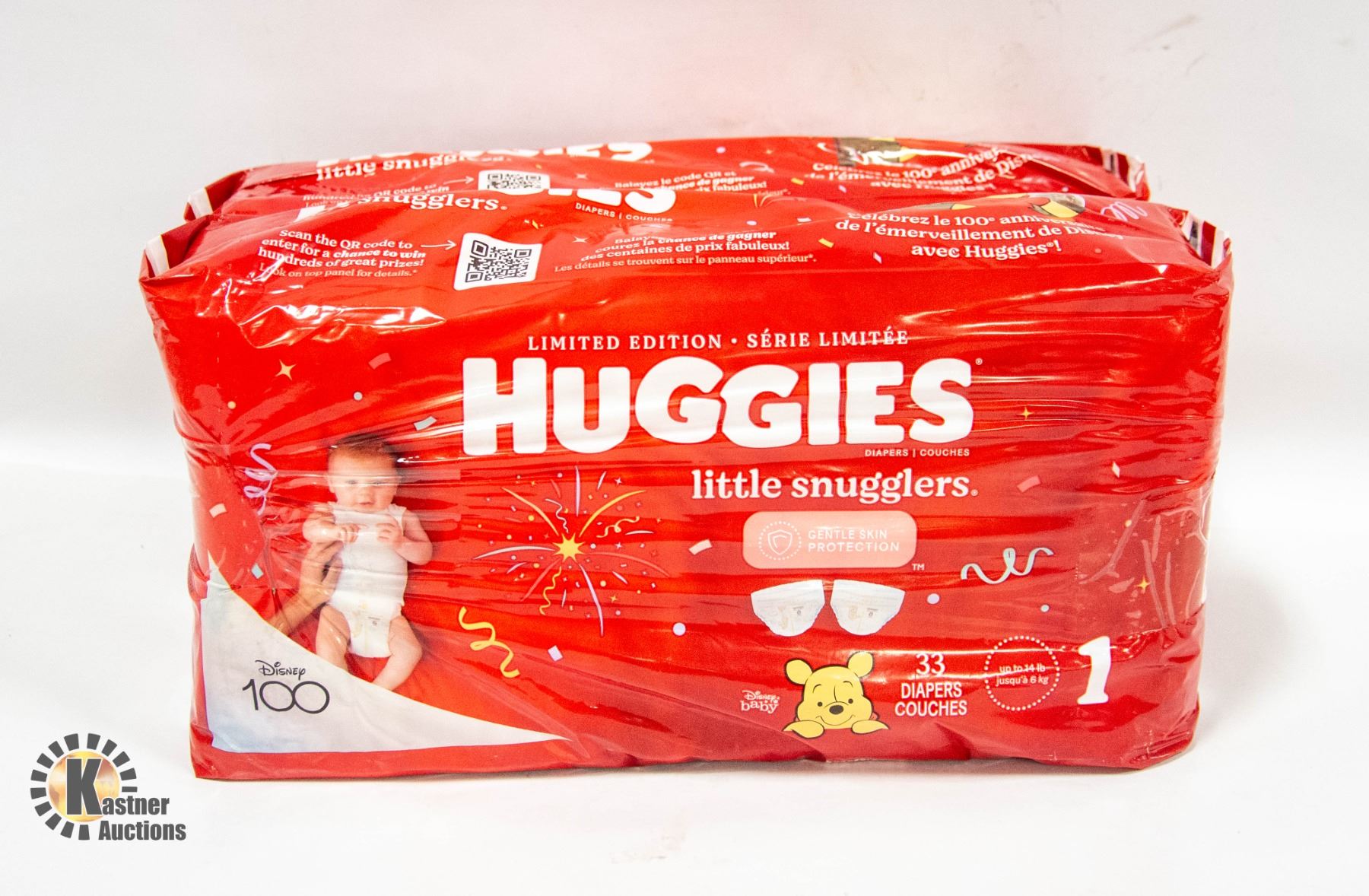 2 NEW HUGGIES LTD EDITION LITTLE SNUGGLERS SZ ONE