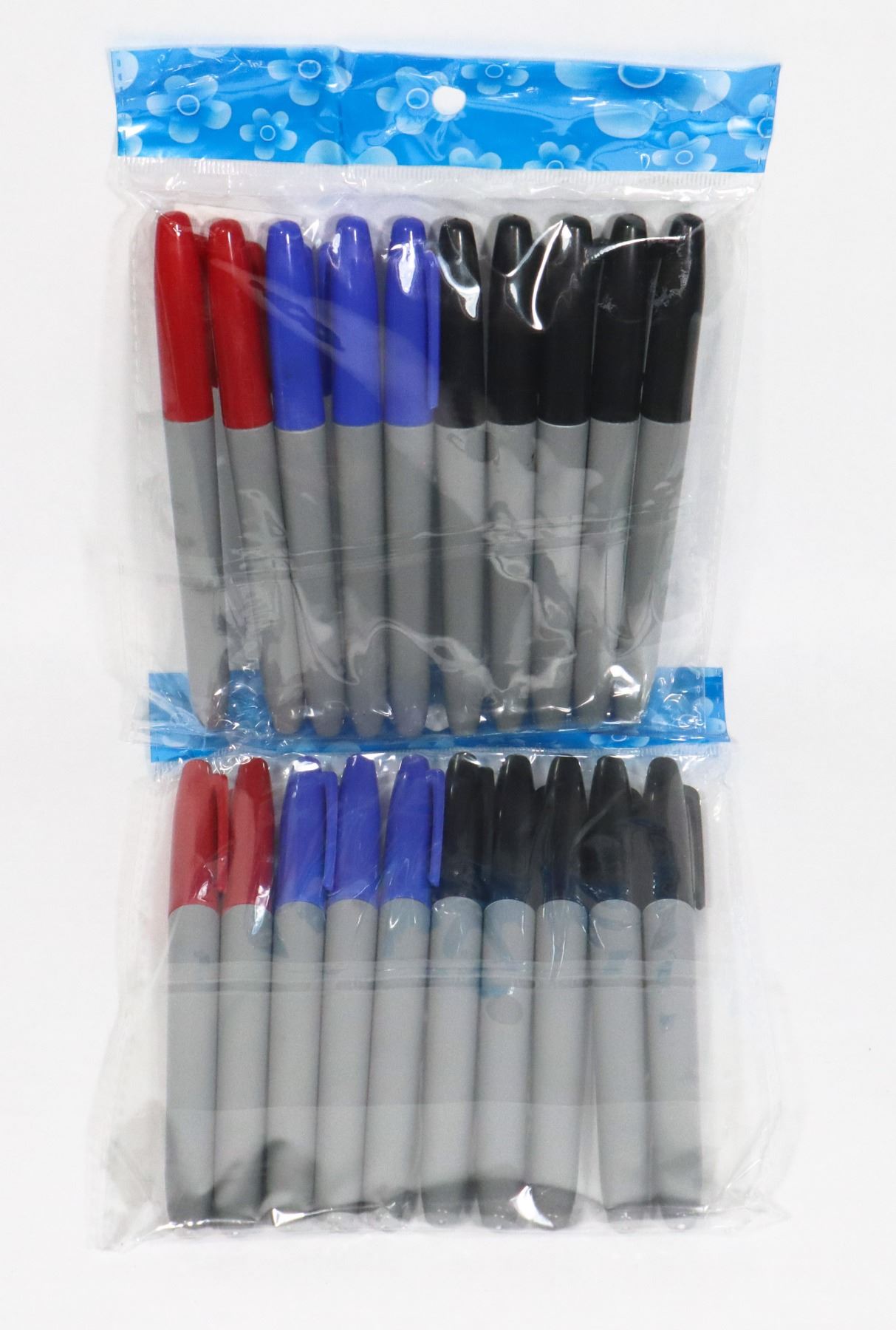 2 NEW PACKS OF PERMANENT MARKERS. BLACK, BLUE AND