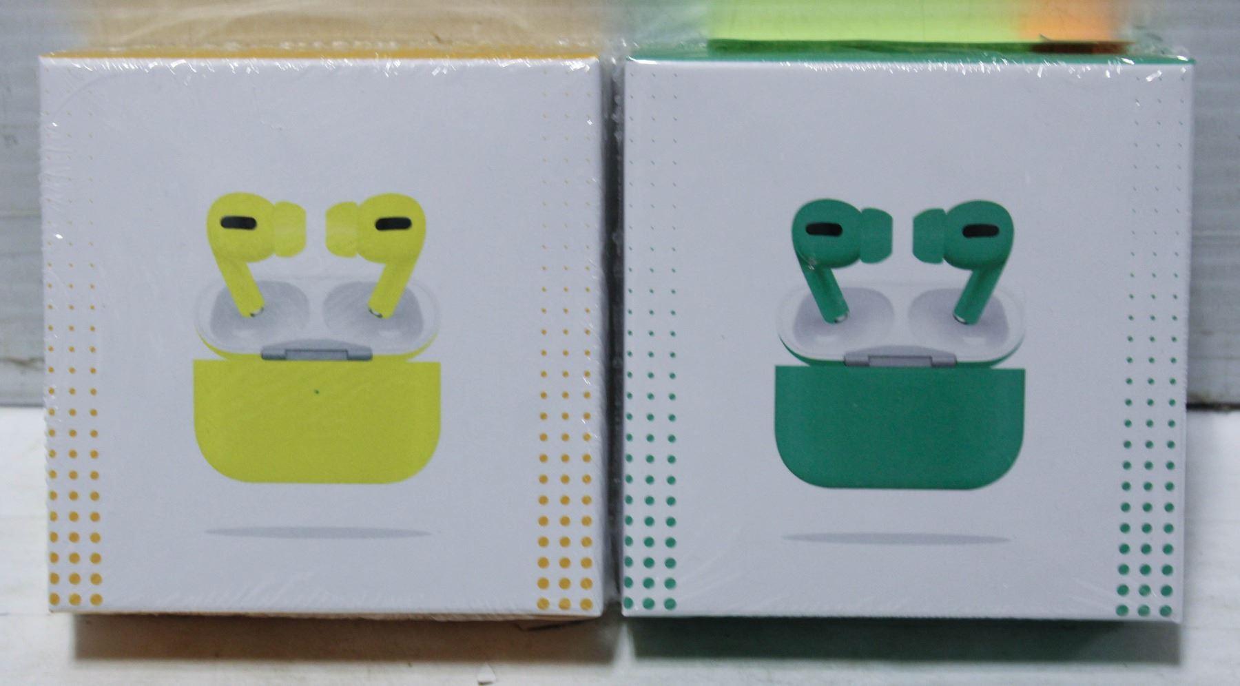 2 NEW PAIRS OF AIRBUDS PRO 1 YELLOW 1 GREEN