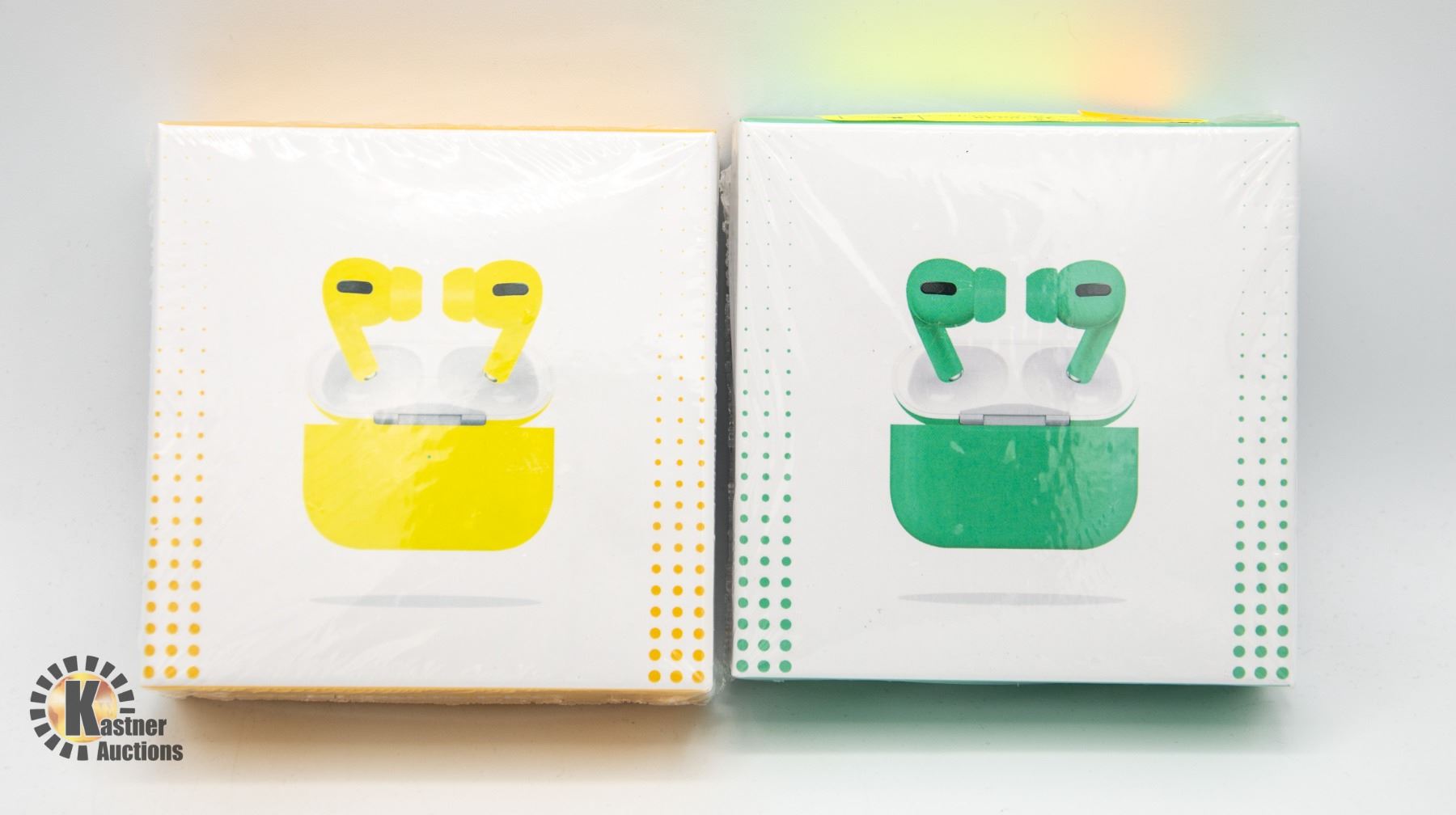2 NEW PAIRS OF AIRBUDS PRO 1 YELLOW 1 GREEN