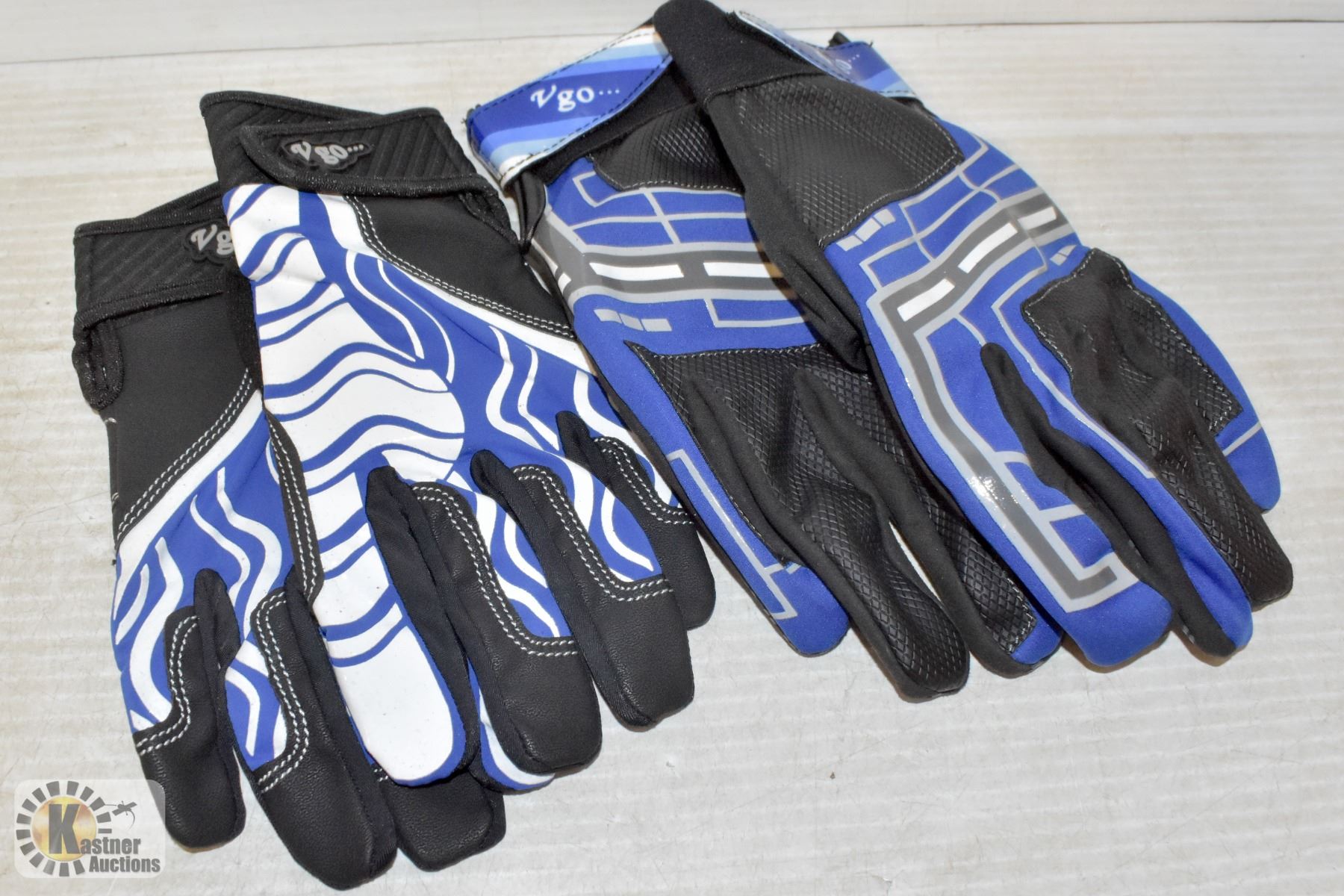 2 NEW PAIRS OF BLACK AND BLUE RIDING GLOVES