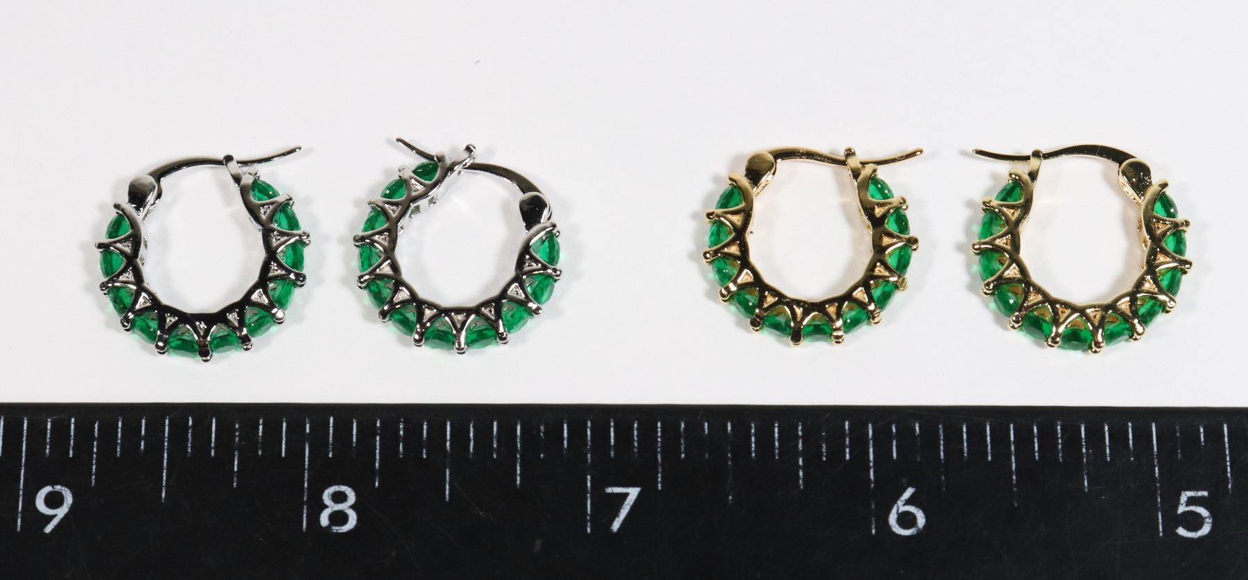 2 NEW PAIRS OF GREEN RHINESTONE HOOP EARRINGS