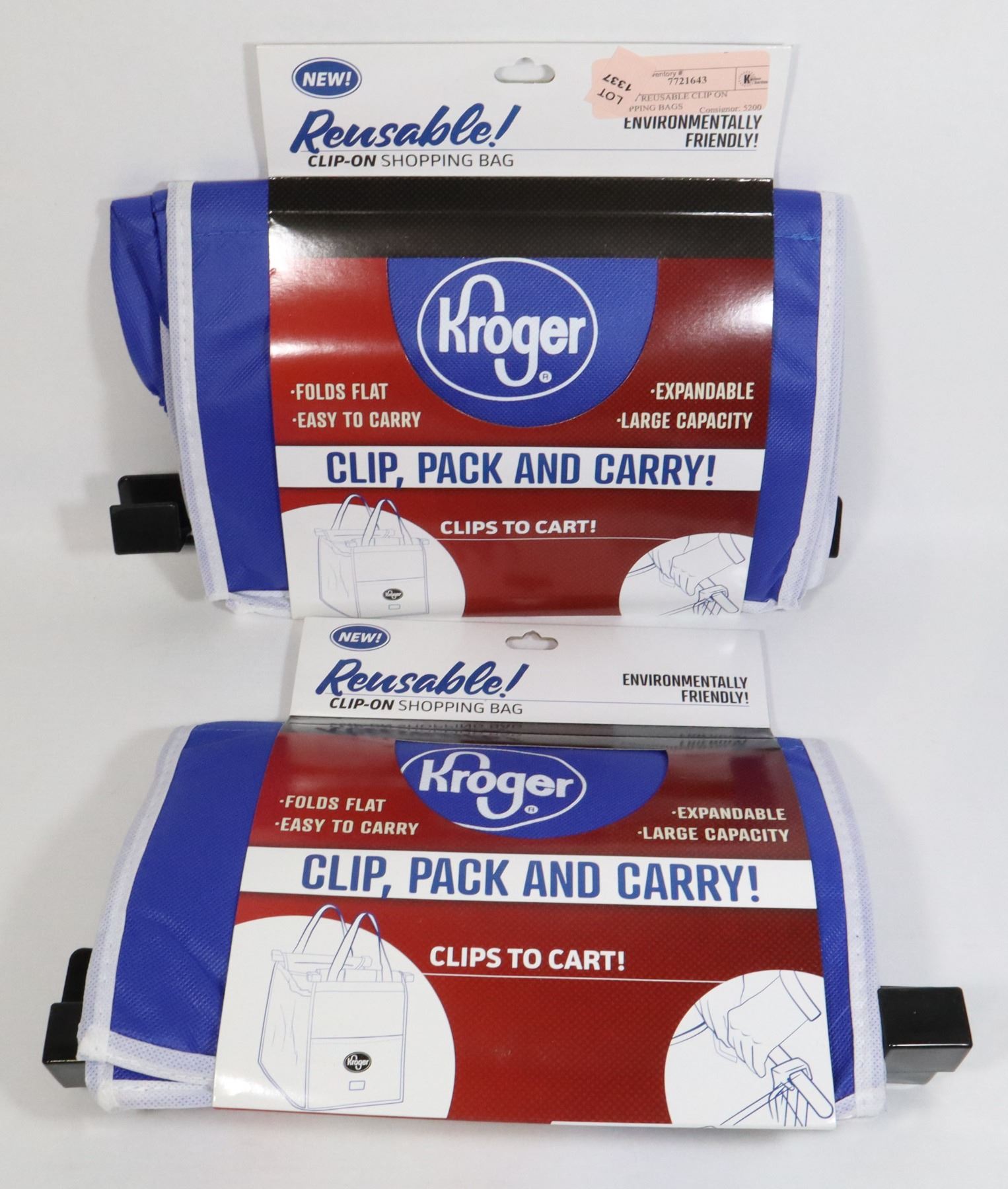 2 NEW REUSABLE CLIP ON SHOPPING BAGS
