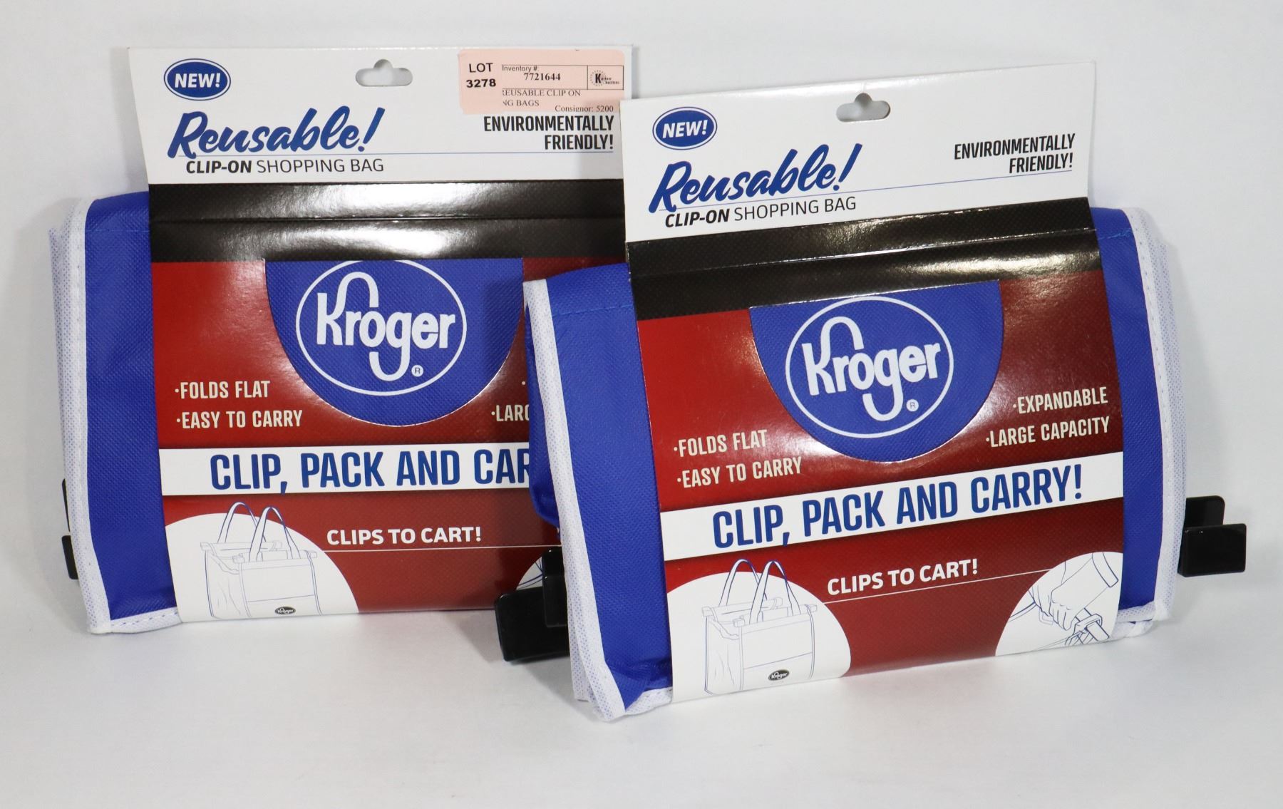 2 NEW REUSABLE CLIP ON SHOPPING BAGS