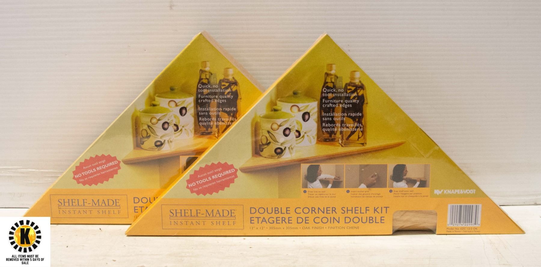 12" X 12" (SHELF-MADE INSTANT SHELF DOUBLE CORNER SHELF KITS)