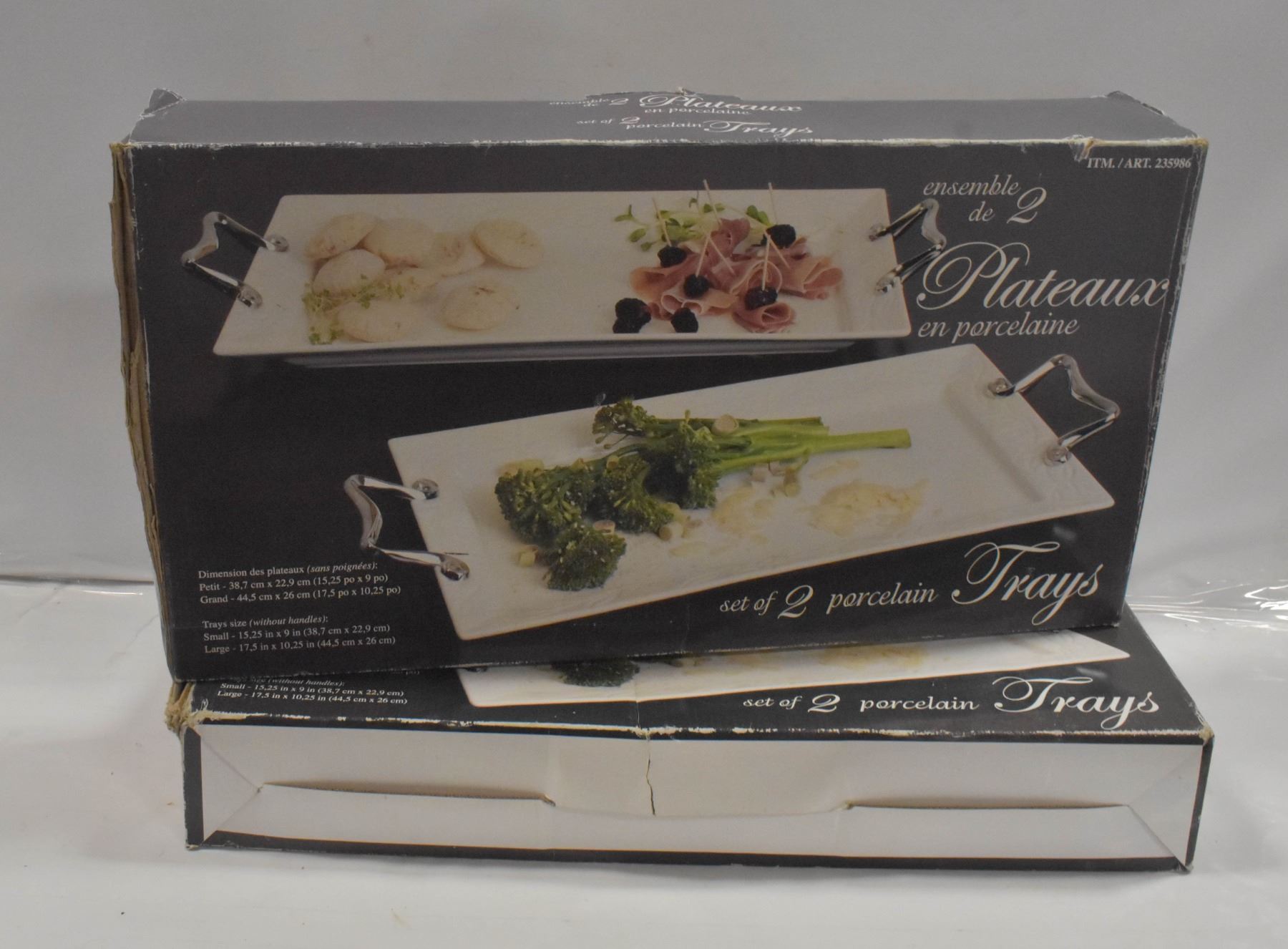 EDGE PROCELAIN TRAYS - 4 TOTAL TRAYS **ALL ITEMS MUST BE REMOVED BY 5PM SATURDAY, MAY 20TH 2023. ALL REMAINING ITEMS WILL BE SUBJECT TO A $6.00 PER DAY STORAGE CHARGE. ANY ITEMS REMAINING AFTER MONDAY, JUNE 5TH, 2023 WILL BE CONSIDERED FORFEITED. NO REFUNDS WILL BE ISSUED FOR FORFEITED ITEMS. TO SCHEDULE A PICK UP APPOINTMENT CLICK HERE