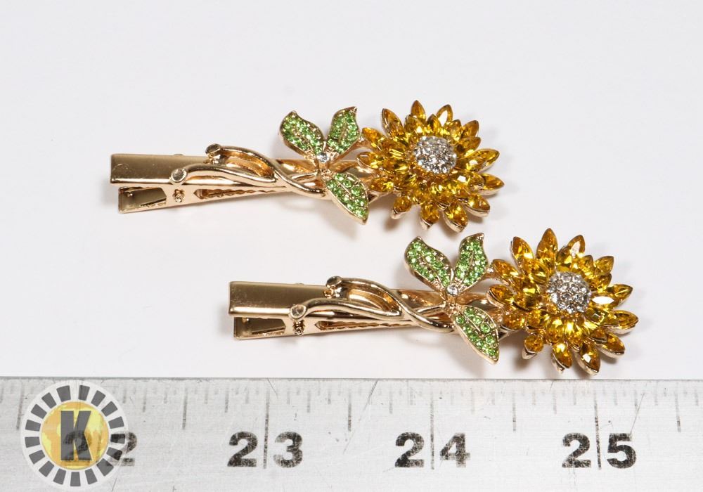 2 NEW SUNFLOWER RHINESTONE HAIR CLIPS