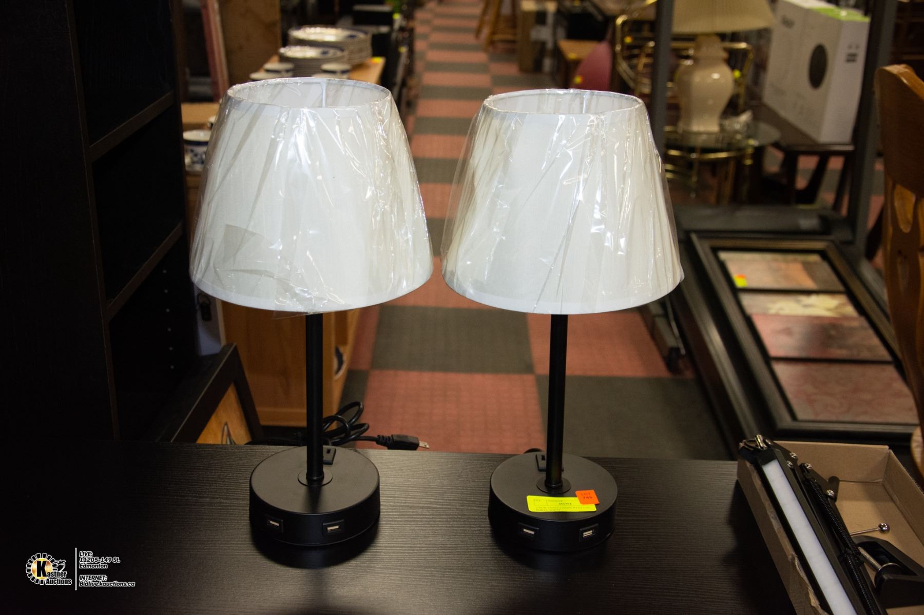 2 NEW TABLE LAMPS WITH USB PORTS, WHITE
