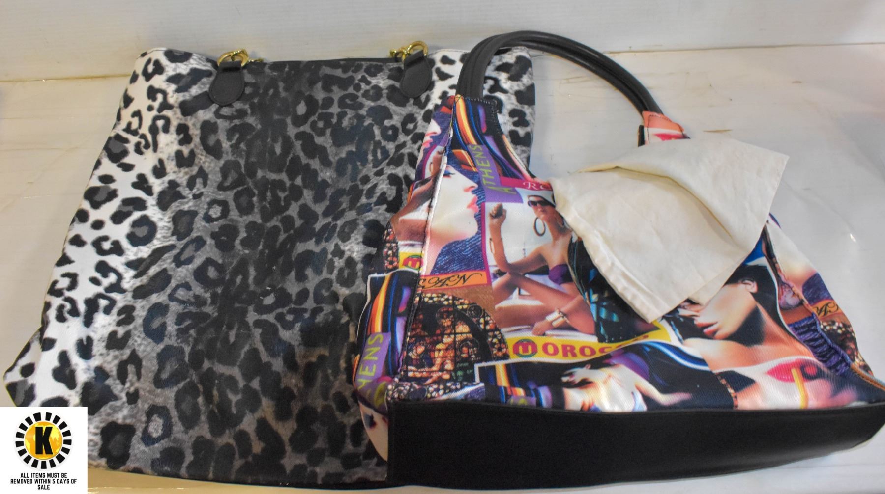 LARGE LEOPARD PRINT SATCHEL AND MODERN ART NOUVEAU ABSTRACT, COMES WITH A PROTECTIVE SAC