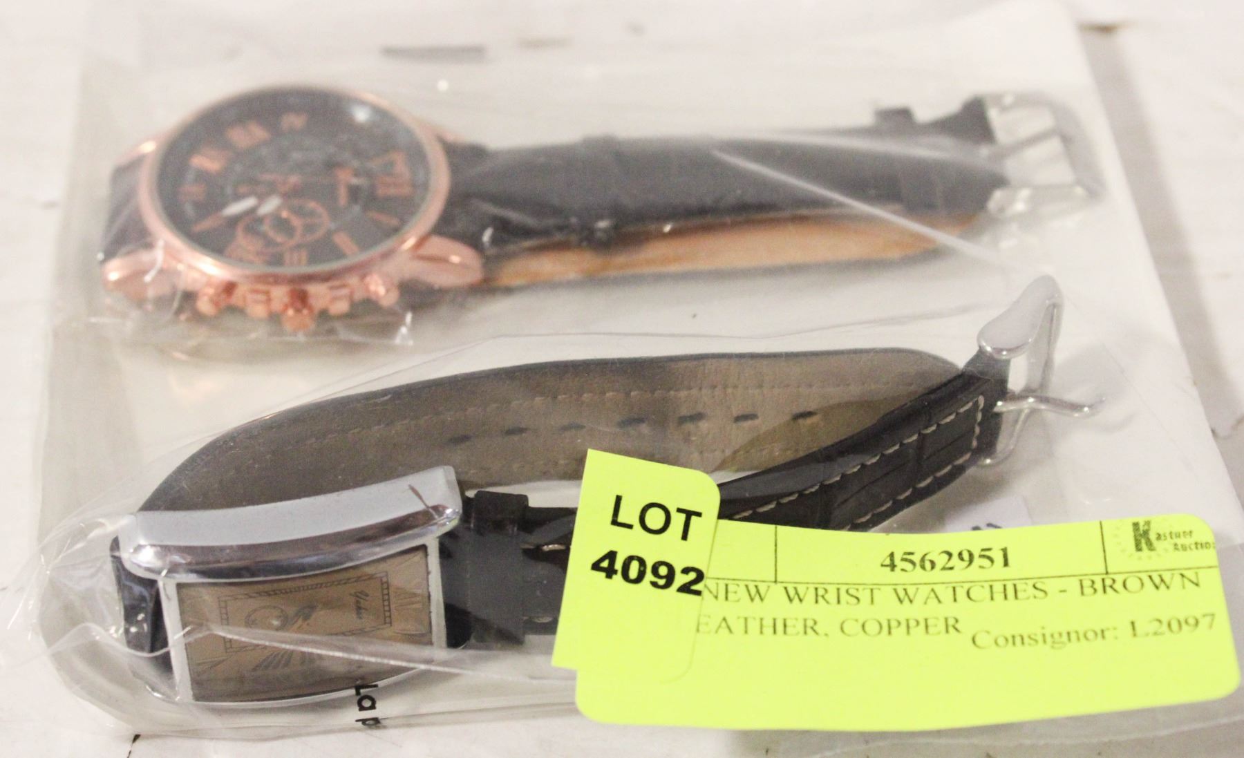 2 NEW WRIST WATCHES - BROWN LEATHER, COPPER