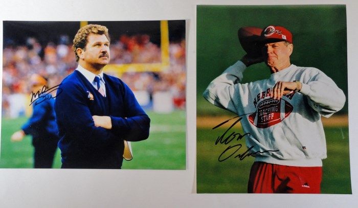 Both photographs signed in black sharpie -- 1 by Tom Osborne and 1 by Mike Ditka. No COA's. Est. Value $100.00 - $125.00.