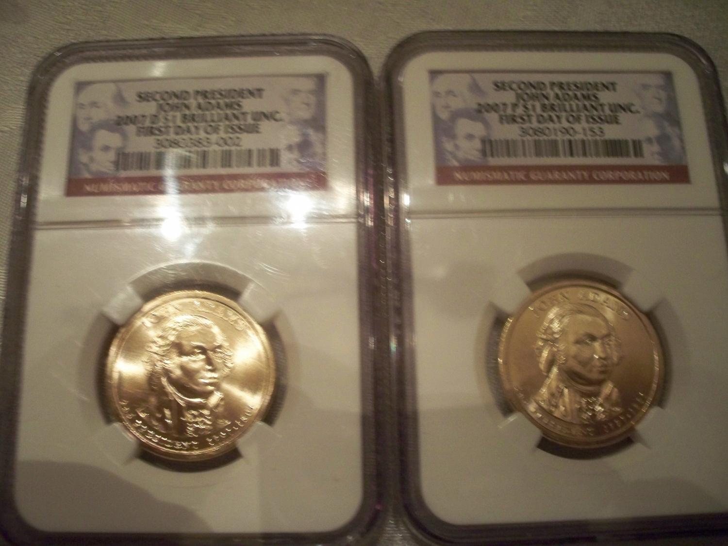 2 NGC Graded 2007 P&D 1st Day Of Issue John Adams $1 Coins