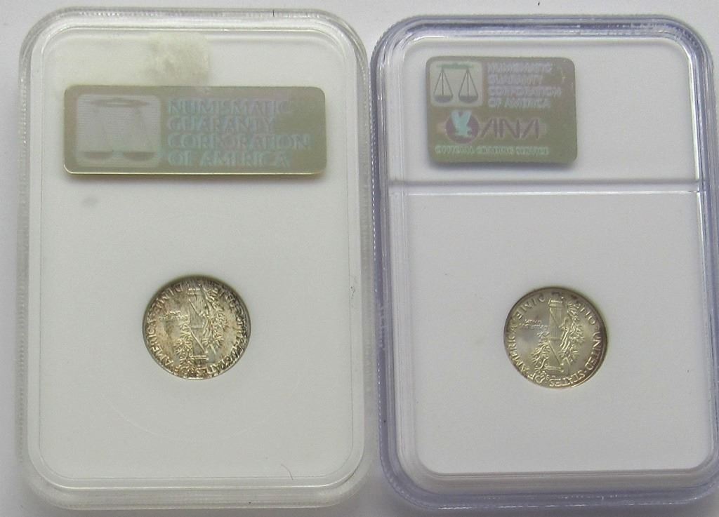 2-NGC Mercury Dimes 1937 MS66, 1939 MS66 10C