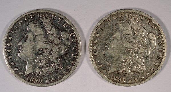 ( 2 ) NICE CIRCULATED MORGAN SILVER DOLLARS, 1891-O AND 1899-O