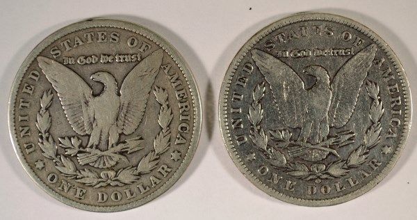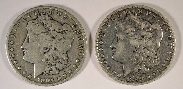 ( 2 ) NICE CIRCULATED MORGAN SILVER DOLLARS, 1899-O AND 1904-P