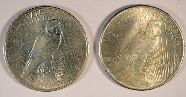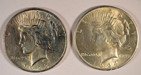 ( 2 ) NICE CIRCULATED PEACE SILVER DOLLARS, 1923-P AND 1924-9
