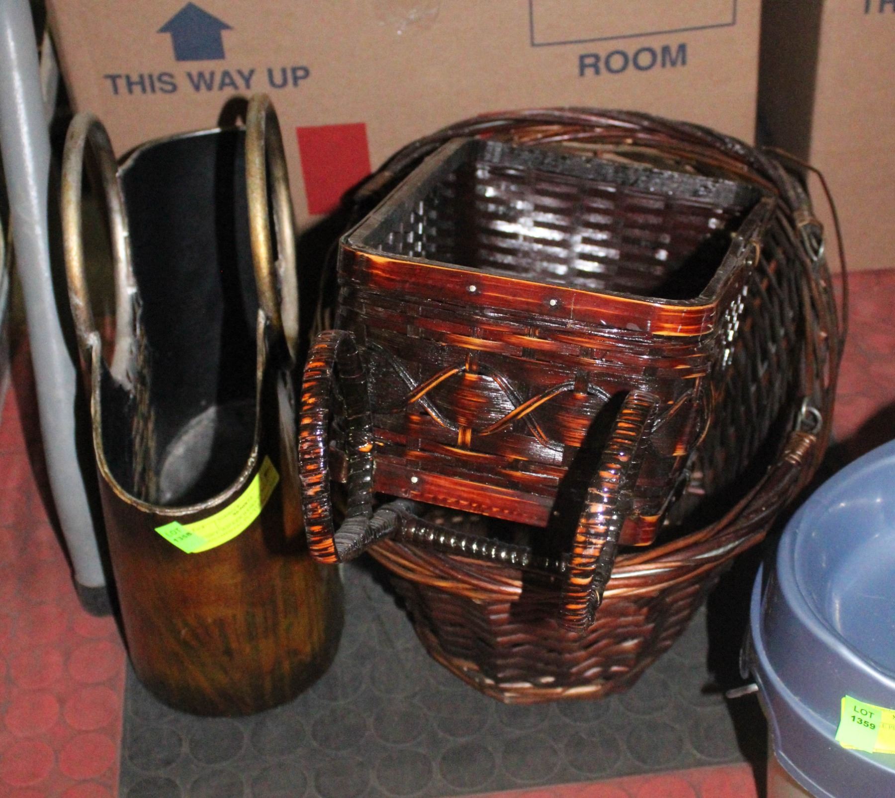 2 NICE WICKER BASKETS PLUS ORNAMENTAL PLANTER