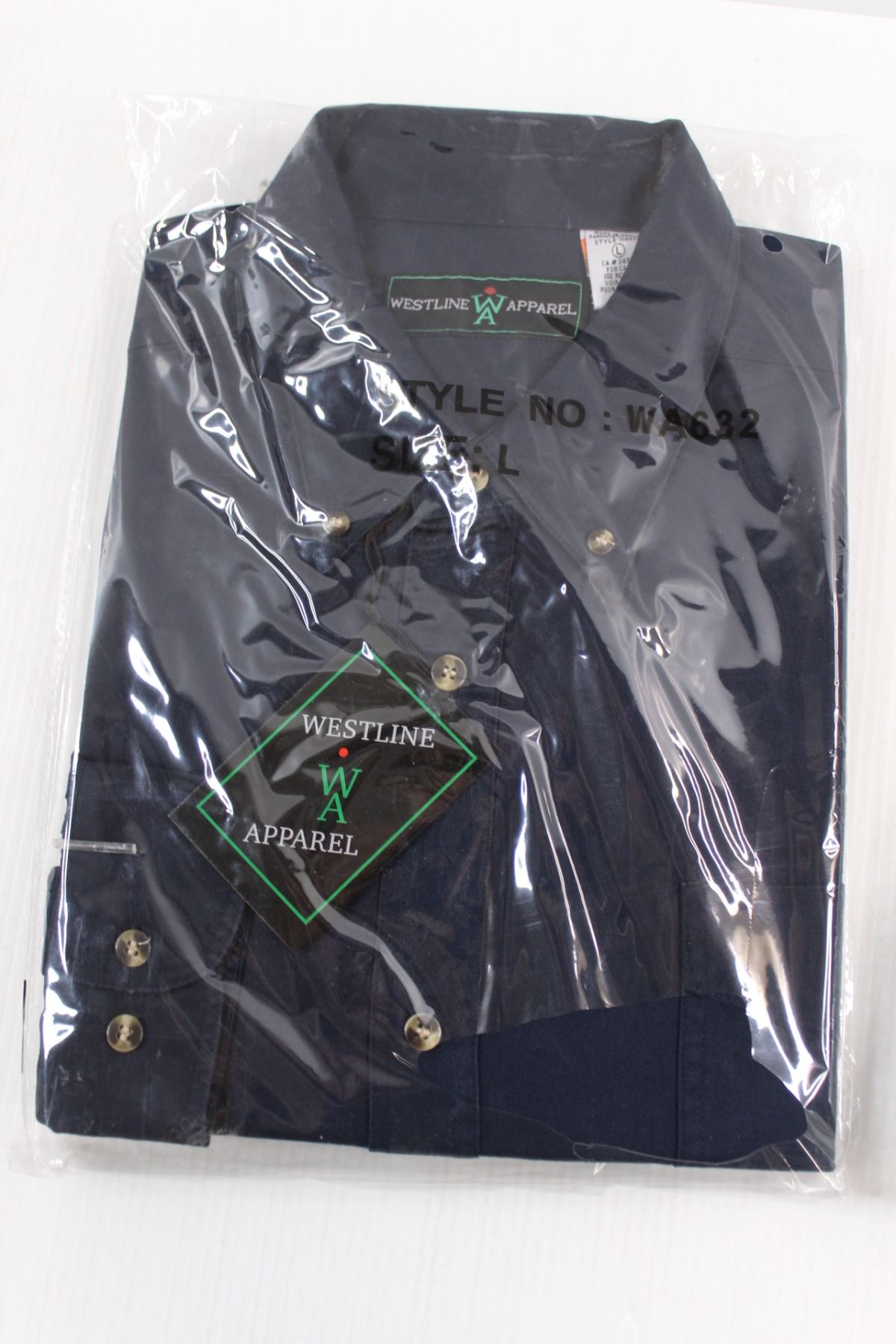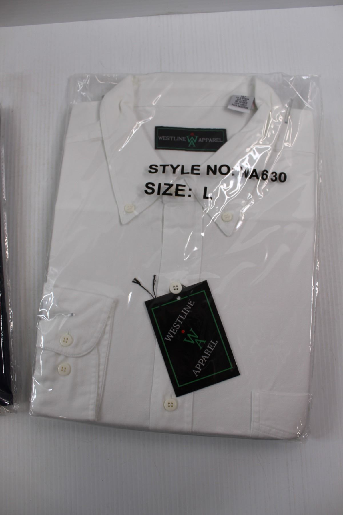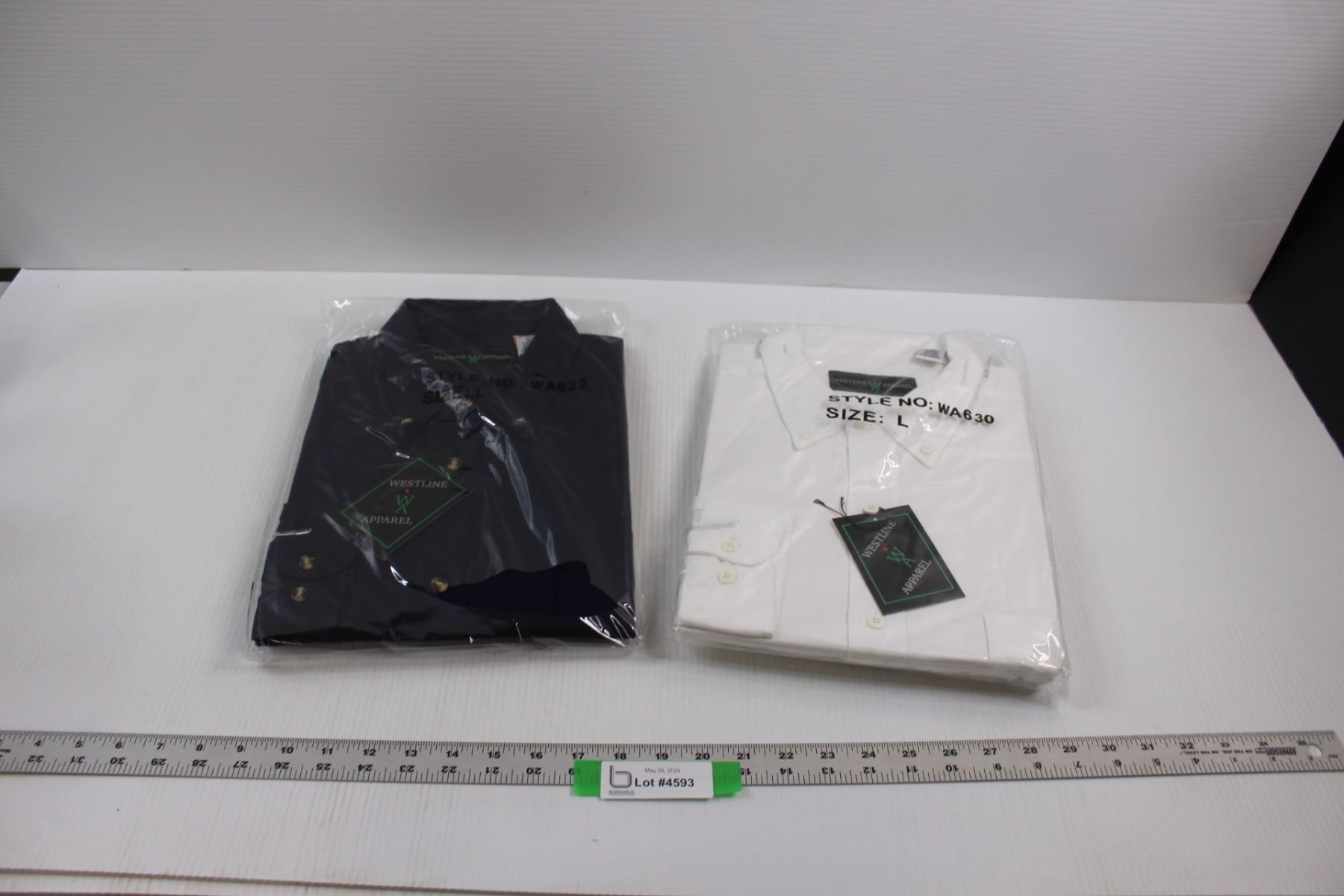 (2) NIP WestLine Apparel Button Up Work Shirts - One Navy Blue, One White (Both Size Large)