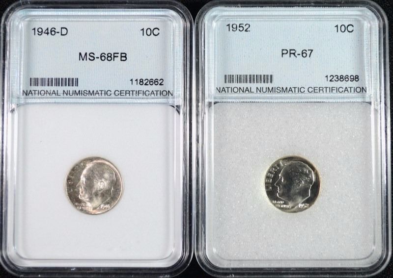 Bid with confidence at Silver Towne Auctions. ESTIMATE $100-$150 - '46-D NNC MS-68FB & '52 NNC PR-67